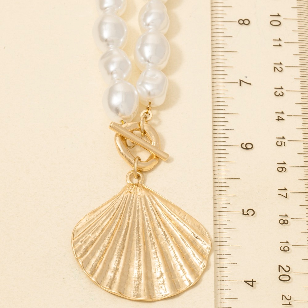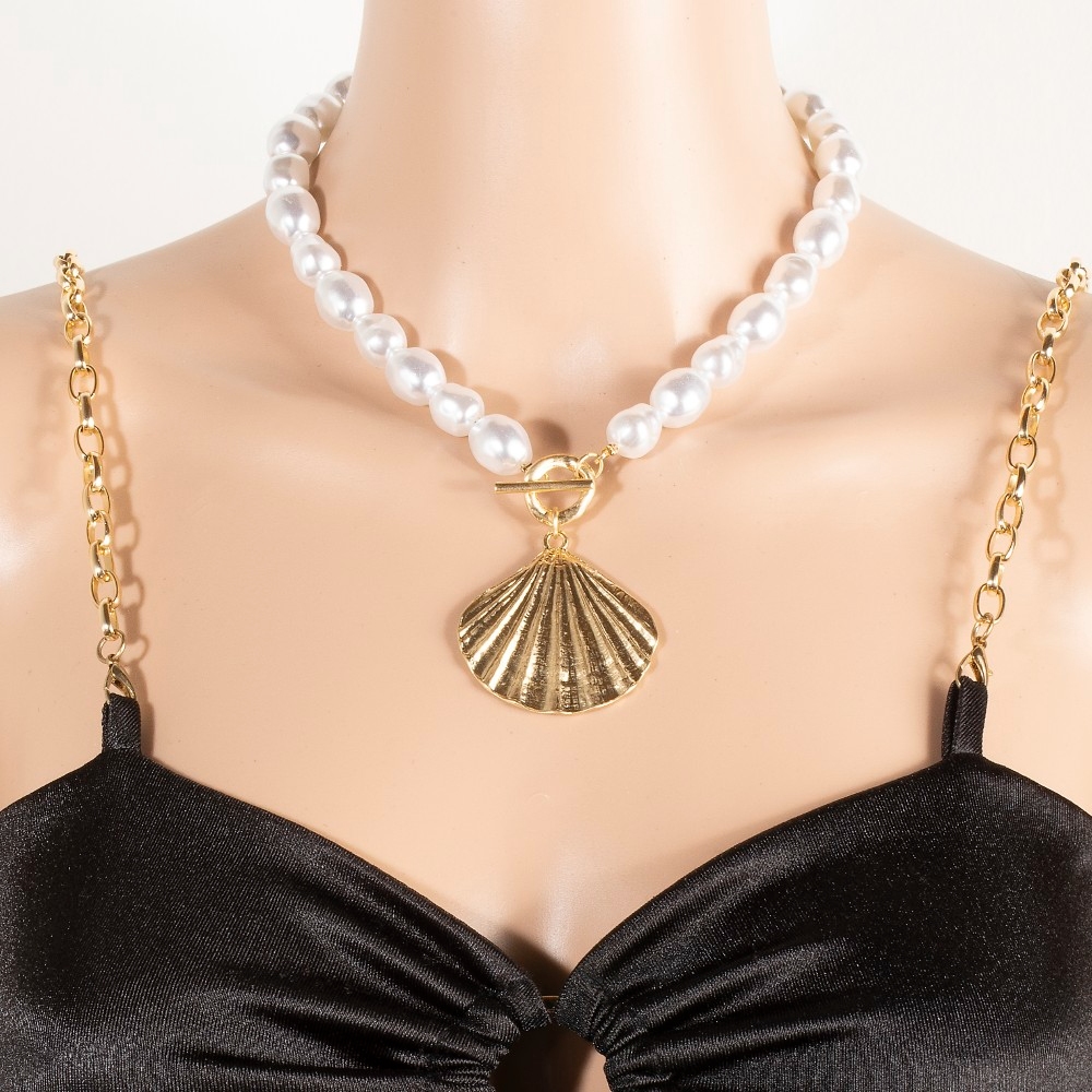 • A modern classic, this necklace displays a unique large clam shell pendant pearl beaded design. Add a dash of sophistication to your look with this versatile necklace, a must-have for fashion enthusiasts. This item is sold in packs of 1.