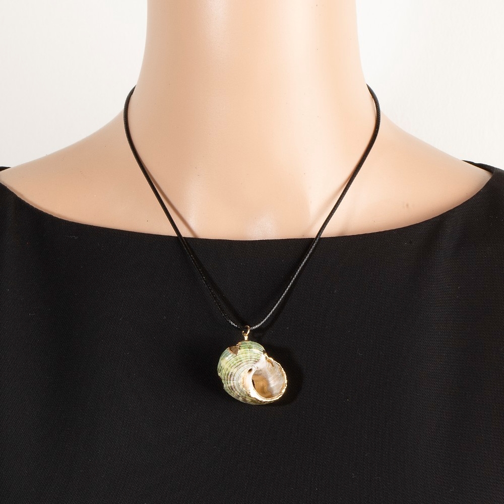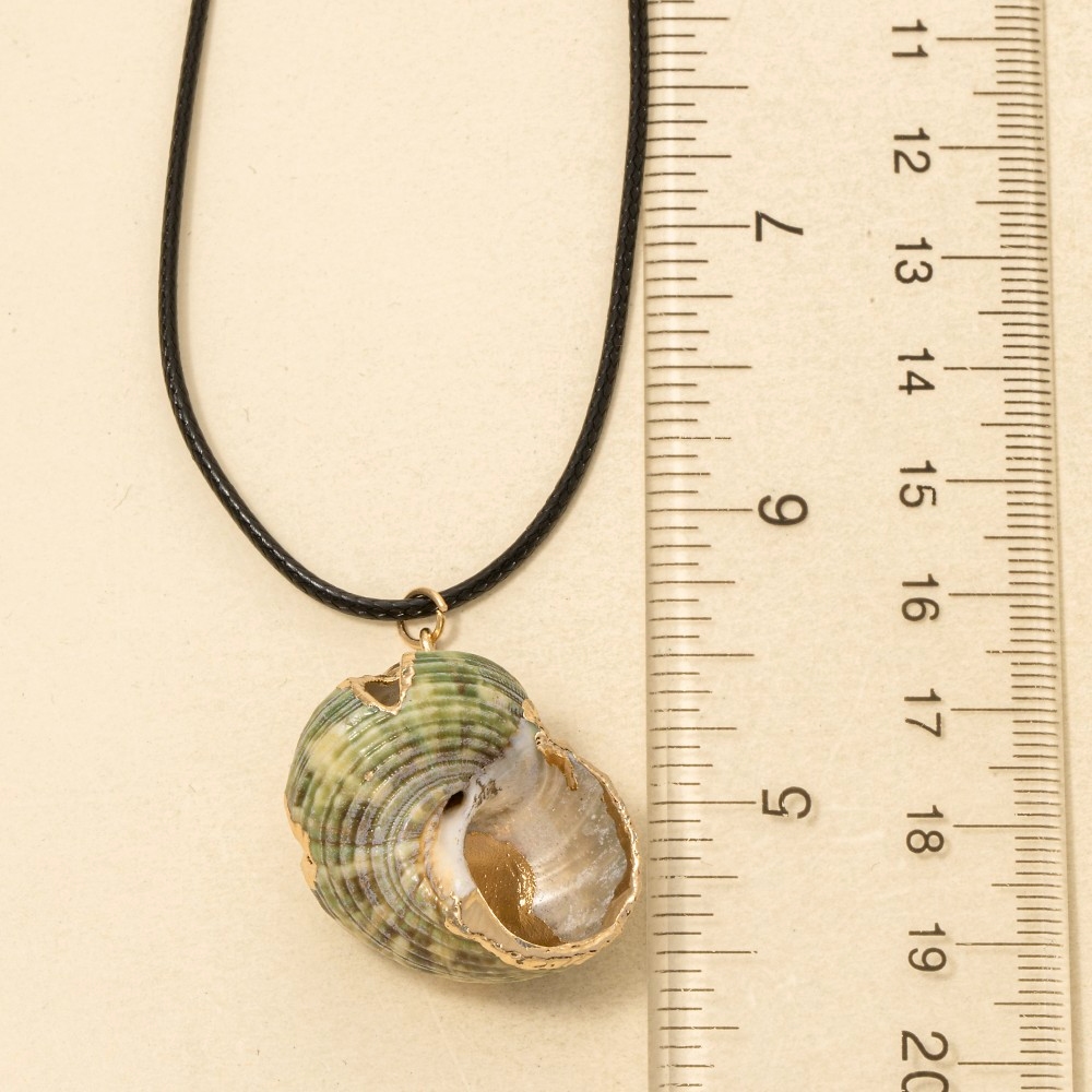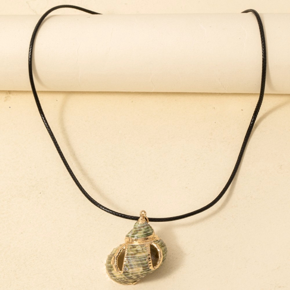 Make a statement, this necklace shows off a distinctive metallic accent large green sea snail shell pendant cord design. Unleash the potential of your wardrobe with this versatile necklace, ensuring a touch of elegance in every ensemble. Available in G. This item is sold in packs of 1.