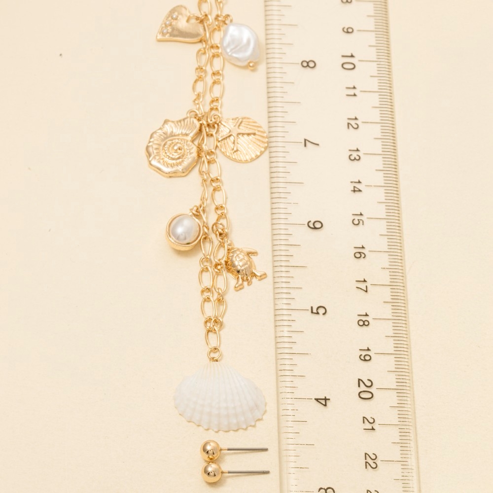 Mixed Sea Life And Pearl Charms Chain Necklace