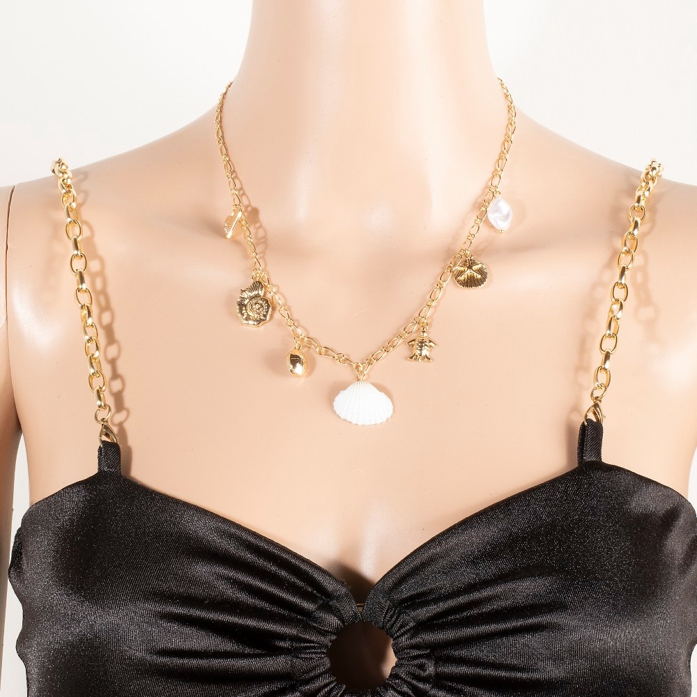 • The perfect way to complete any outfit, this chain necklace reveals an intricate assorted sea life charms set design. Perfect for dressing up or down, this versatile chain necklace adds a touch of sophistication to any look. Available in CRMOGD. This item is sold in packs of 1.