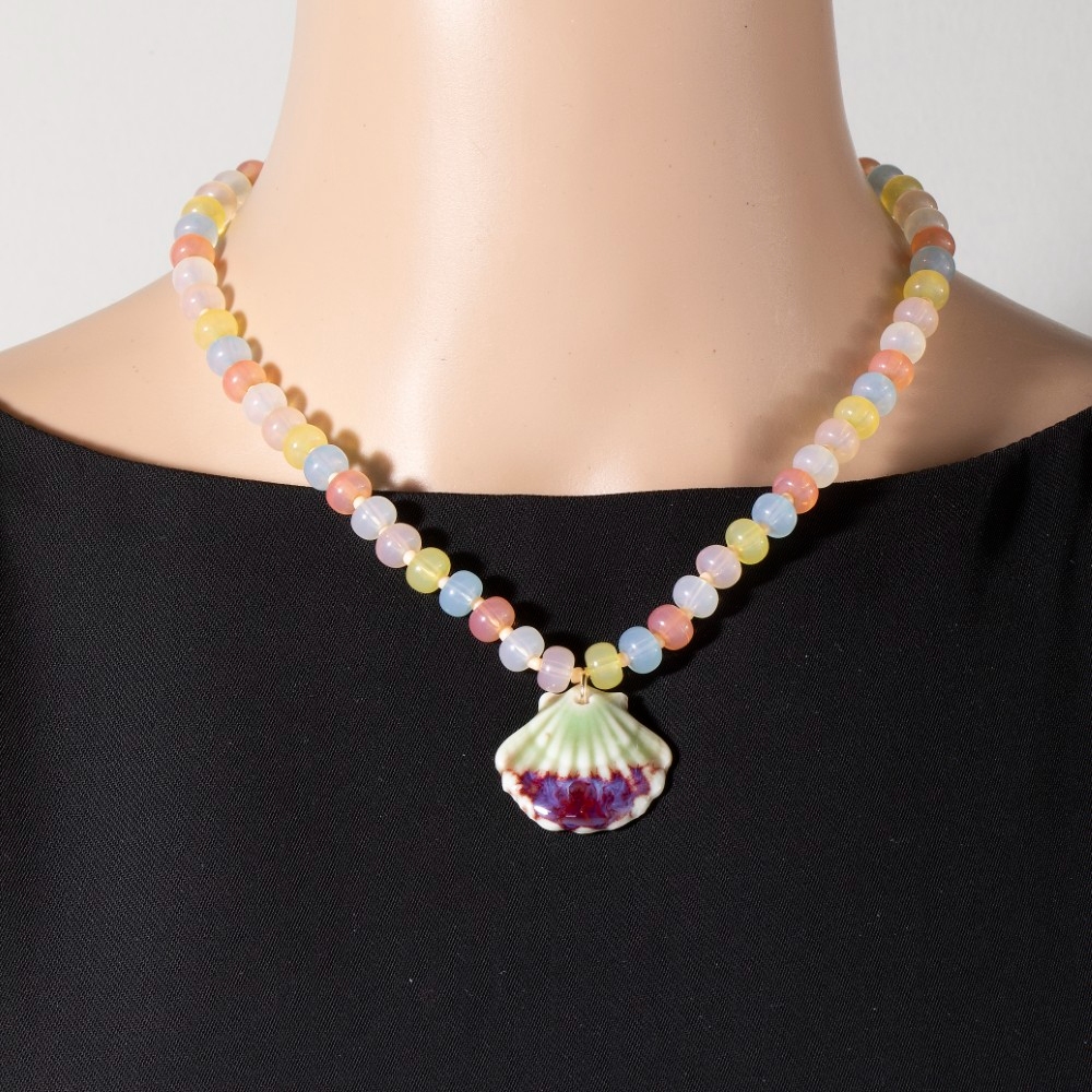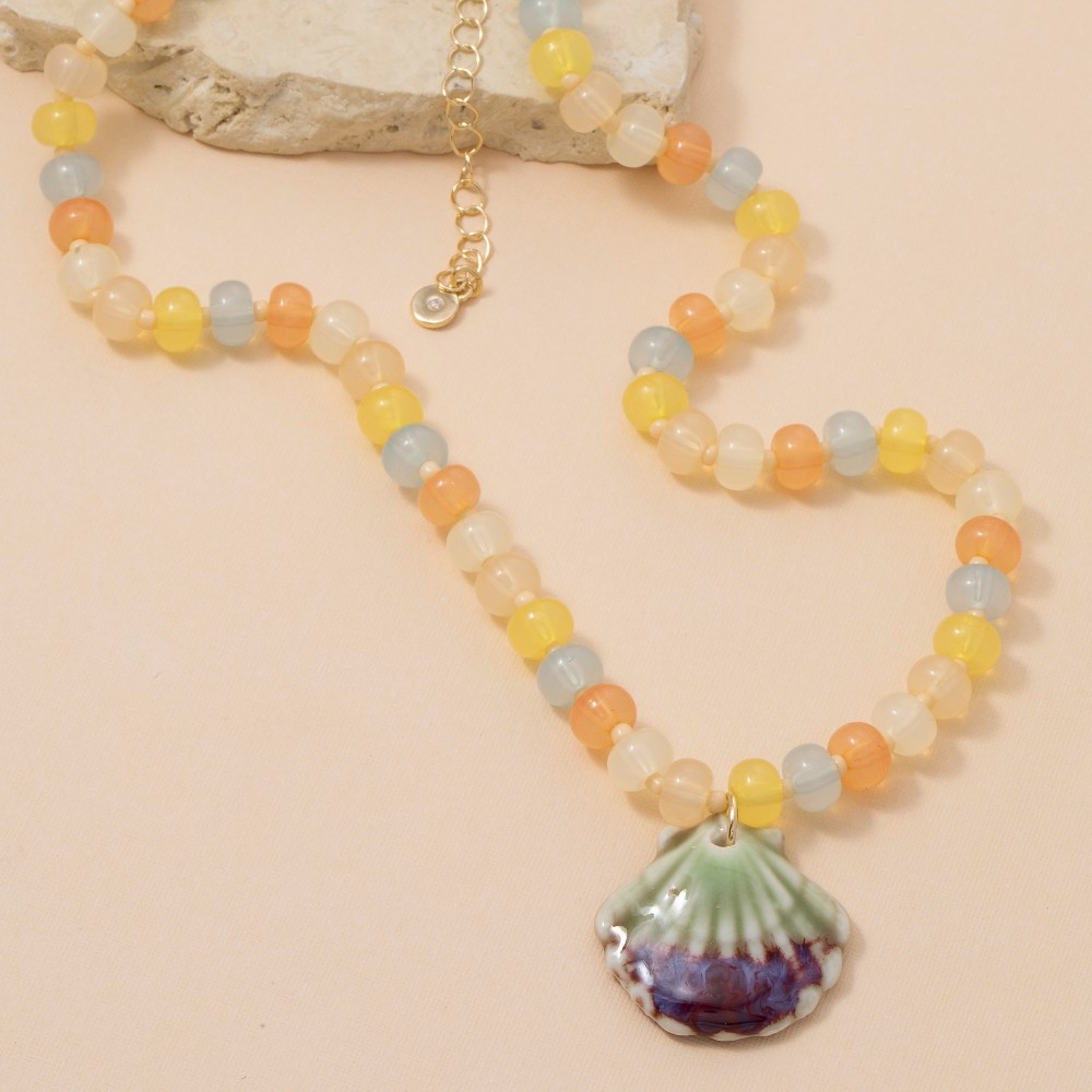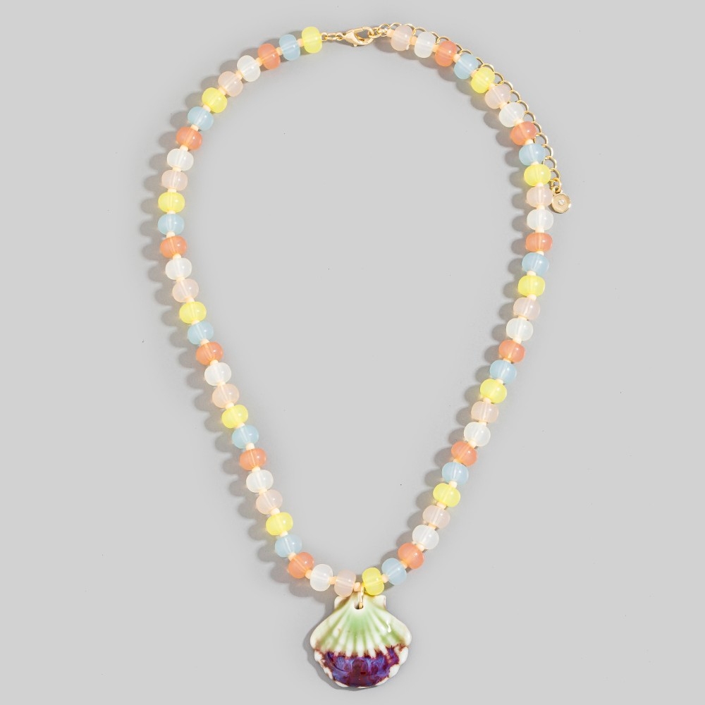 • A bold and daring choice that is sure to impress, this pendant necklace embodies a sophisticated ceramic shell pendant colorful beaded necklace design. This item is ideal for those who want to add some personality to their outfits without being too bold. Available in GDLMT. This item is sold in packs of 1.