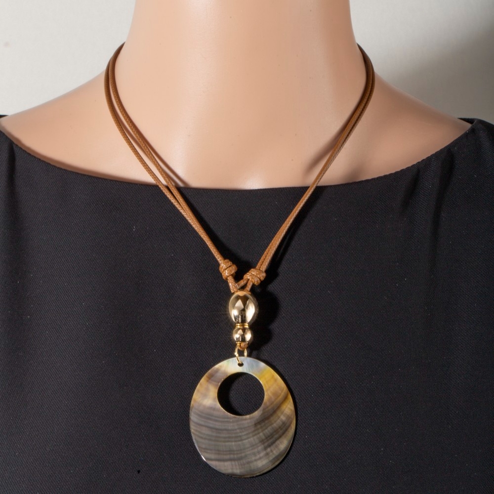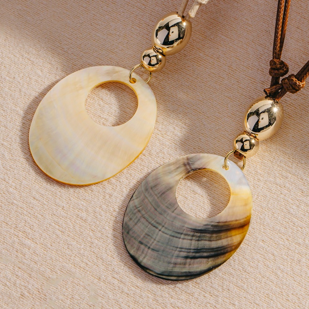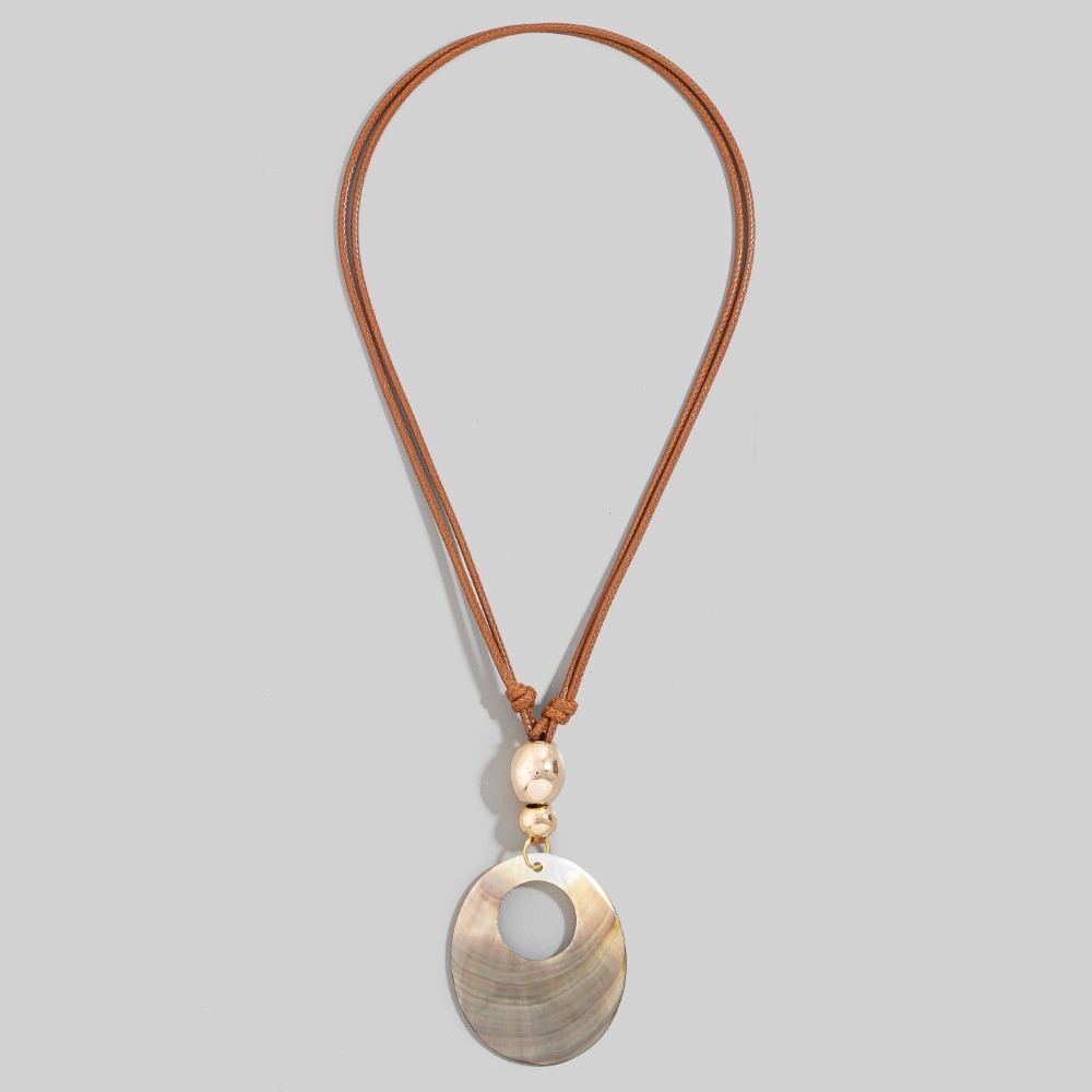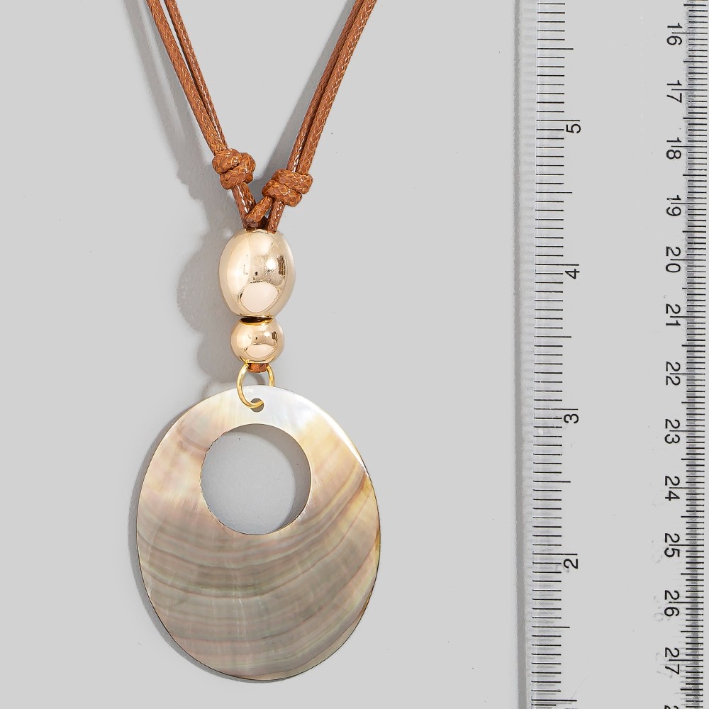- This is the perfect pendant necklace for any occasion pendant necklace flaunts a luxurious large sea shell oval hoop pendant layered cord necklace design. This item is a great way to add some texture and dimension to any outfit. Available in BE, BK. This item is sold in packs of 1.