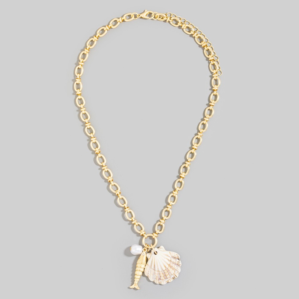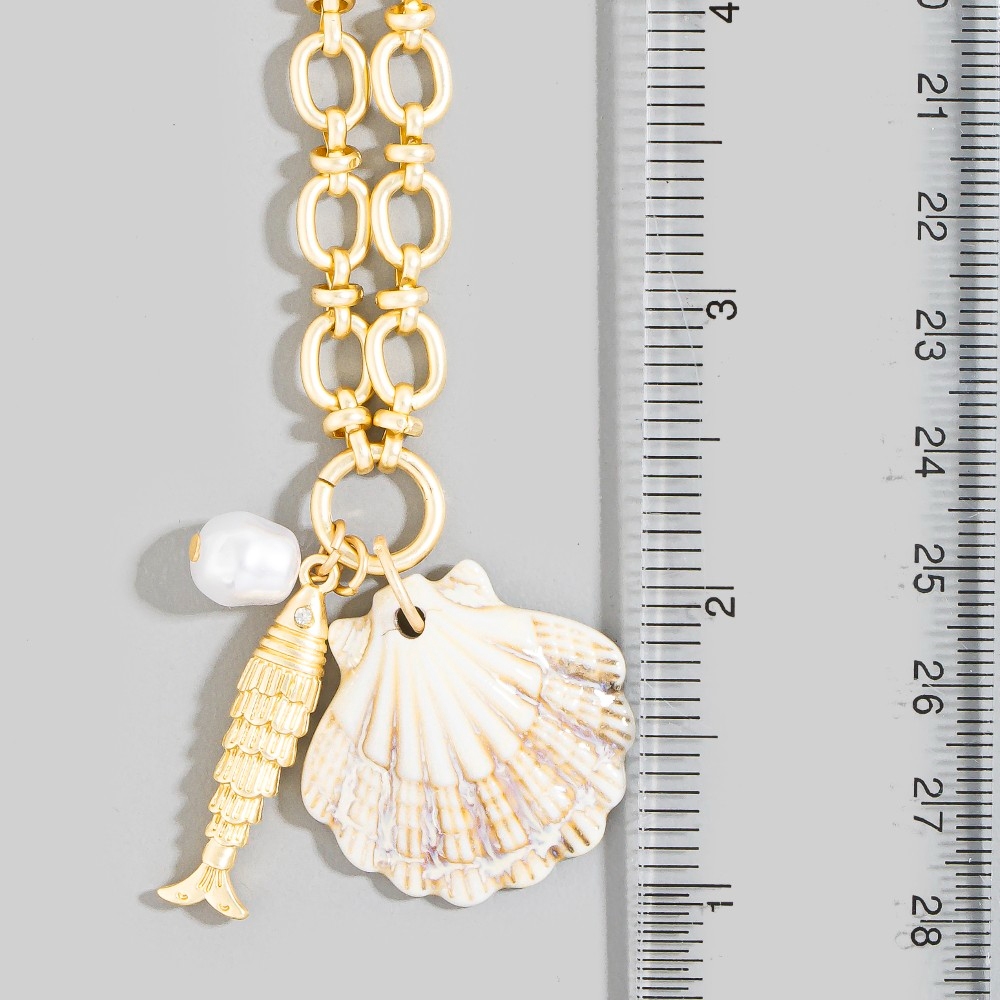 Mixed Sea Life And Pearl Charms Chain Necklace