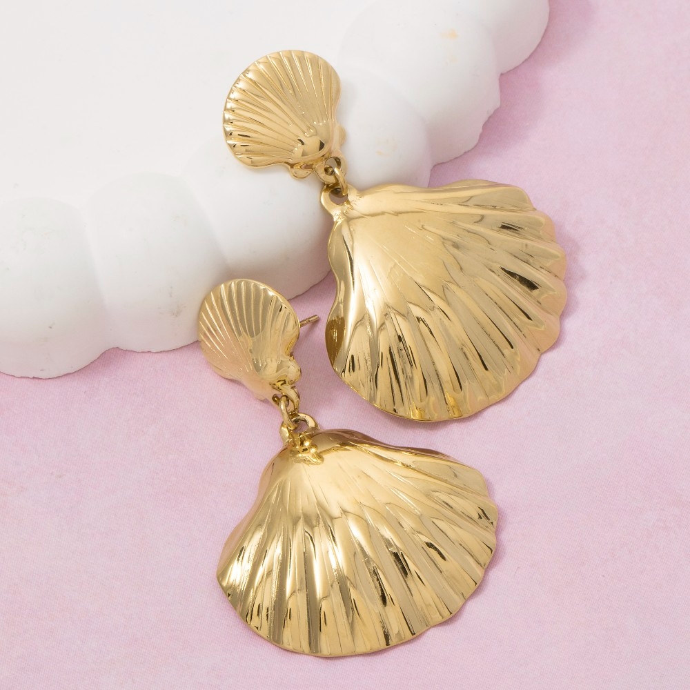 • The perfect way to elevate any outfit, this pair of drop earrings boasts a magnificent stainless steel sealife seashell design. The perfect way to complete any outfit, whether you're dressing up or keeping it casual. Available in SGD. This item is sold in packs of 1.
