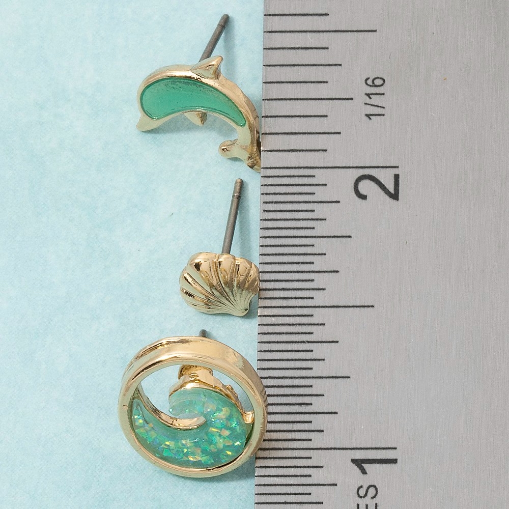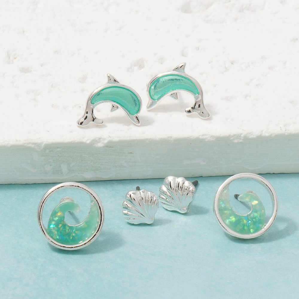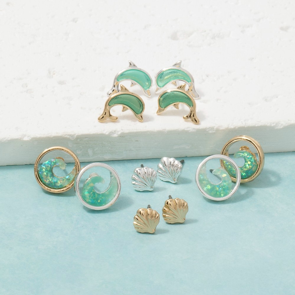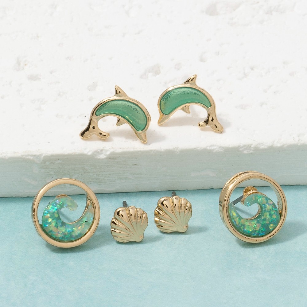 Upgrade your pair of earrings game, this pair of earrings exudes a refined ocean trio stud earring set design. Redefine your fashion identity with this versatile pair of earrings, a timeless piece that complements any wardrobe. Available in GTQ, STQ. This item is sold in packs of 1.