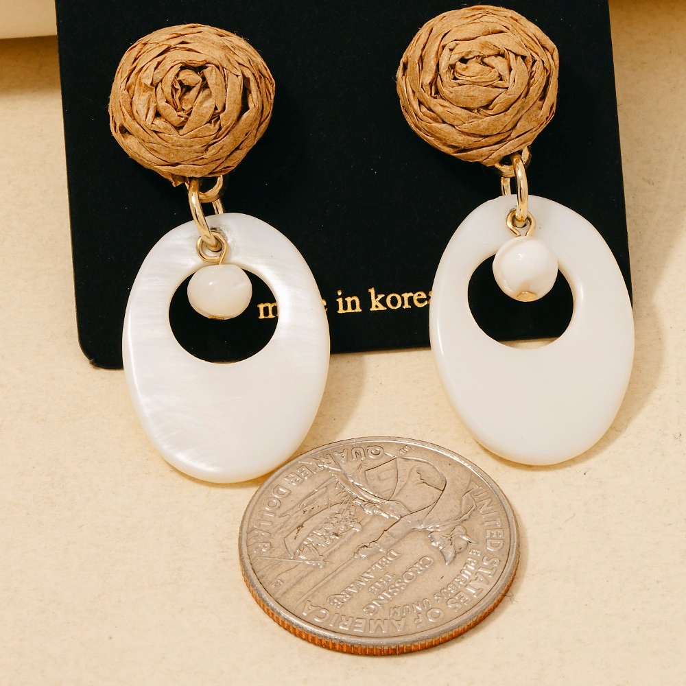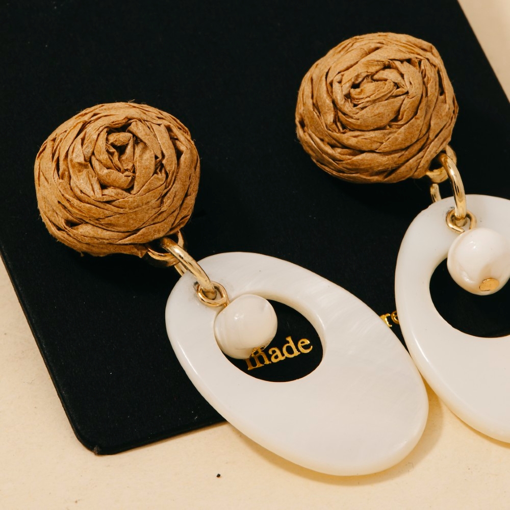 • This pair of dangle earrings is made with 40% Rattan and 60% Shell.