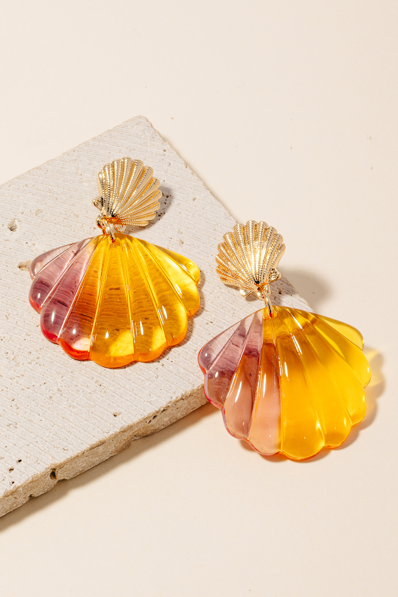 Metallic Accent Sea Shell And Fridge Stud Dangle Earrings