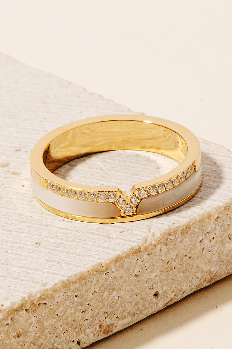 • Make a bold statement, this ring incorporates a remarkable layered rhinestone studs and seashell band design. Elevate your fashion ensemble effortlessly with this versatile ring, a stylish choice for the modern trendsetter. Available in G and S. This item is sold in packs of 1. Ring size 6.75