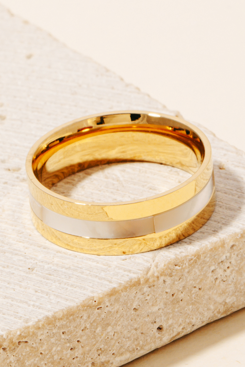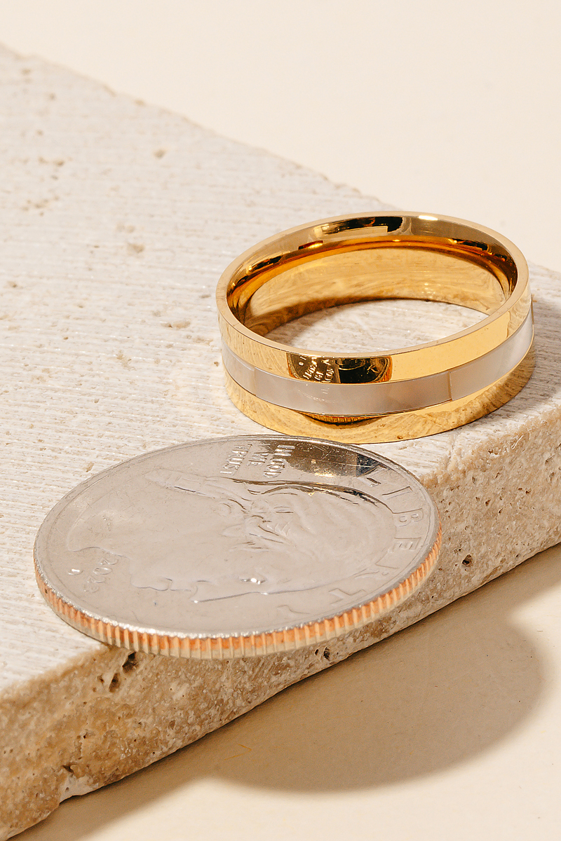 • This piece is a true showstopper, this ring encompasses a grand seashell inlay metallic band design. Elevate your fashion IQ with this versatile ring, designed to seamlessly integrate into any style profile. Available in G and S. This item is sold in packs of 1. Ring size 6.75