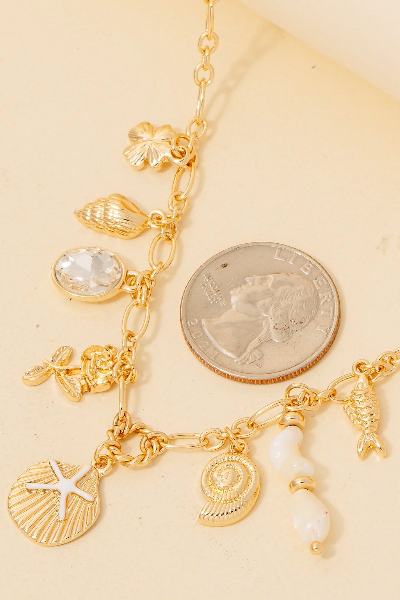 Mixed Sea Life And Pearl Charms Chain Necklace