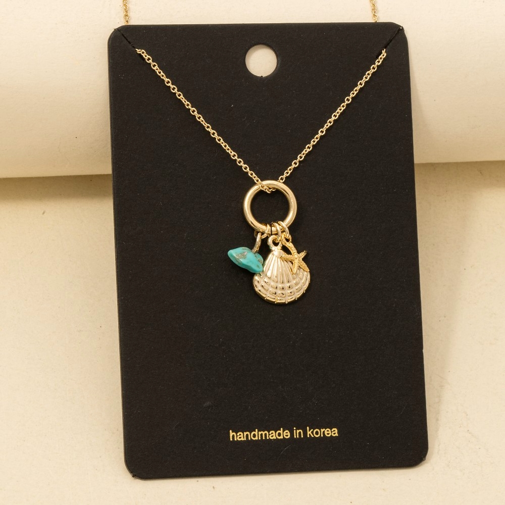 A timeless piece that will never go out of style, this necklace incorporates a flawless sea life stone seashell charms design. Master the art of accessorizing with this versatile necklace, a key element for achieving a chic and polished look. Available in . This item is sold in packs of 1.