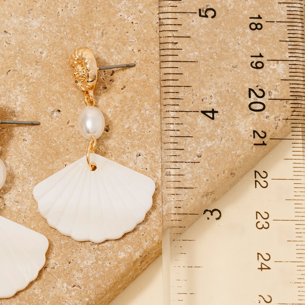 Metallic Accent Sea Shell And Fridge Stud Dangle Earrings