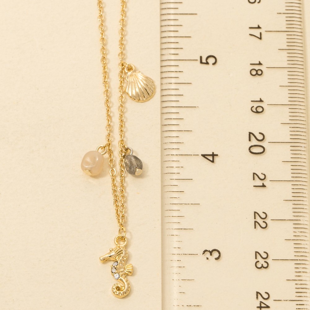 Stone Beads And Sea Life Charms Necklace