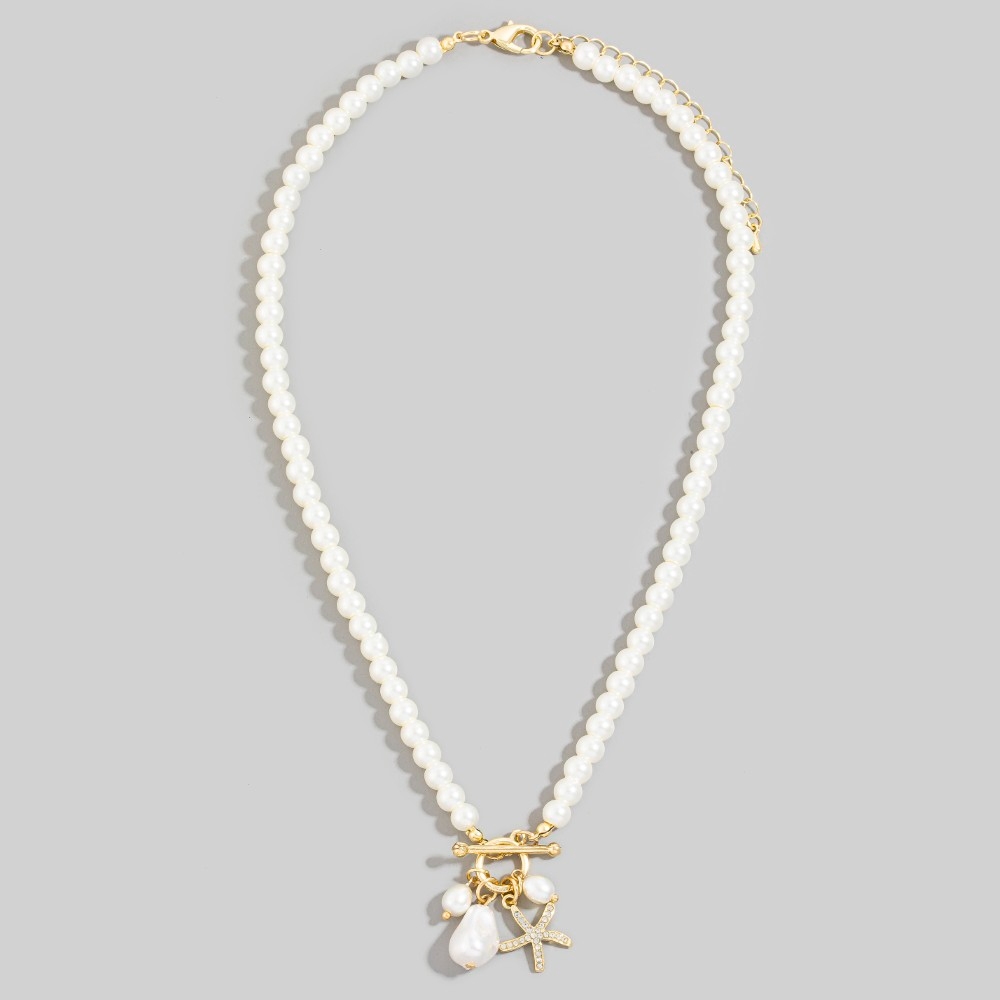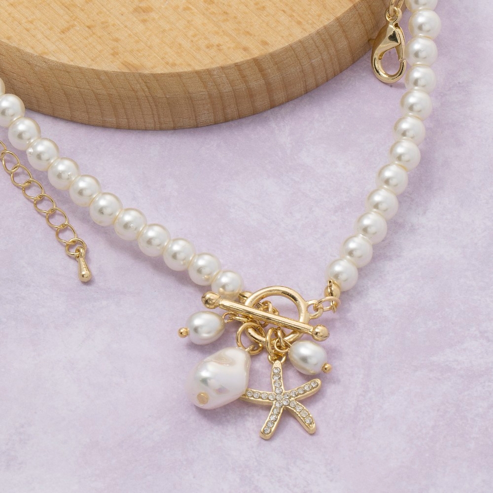 • This piece is a true showstopper, this pendant necklace emanates an elegant starfish and pearl pendants beaded necklace design. The perfect pendant necklace for completing any outfit, whether you're dressing up or keeping it casual. Available in G. This item is sold in packs of 1.
