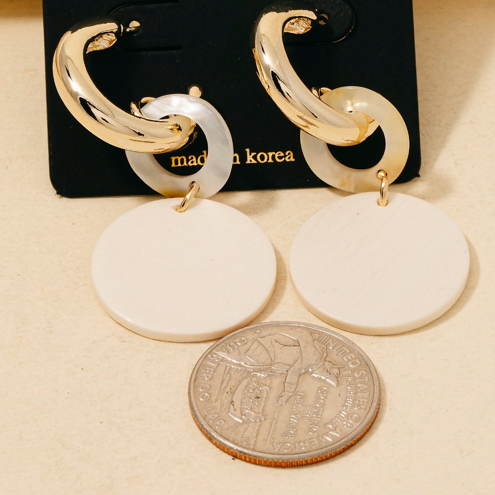 • This season's must-have pair of hoop earrings, this pair of hoop earrings presents a striking wood and shell link dangle design. A versatile pair of hoop earrings that's perfect for any occasion, adding a touch of elegance and style to any outfit. Available in G. This item is sold in packs of 1.