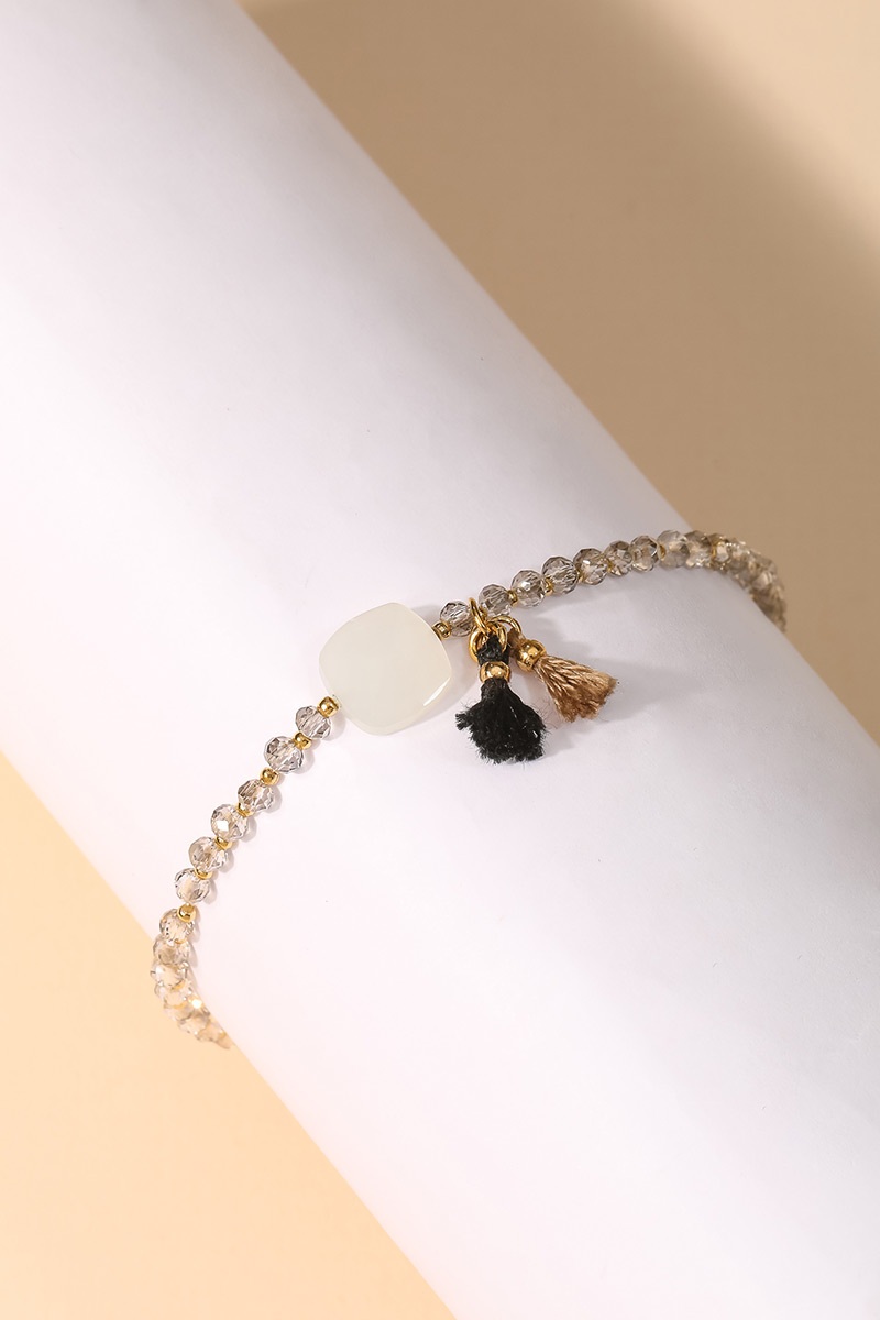 • "This new popular trending bracelet that features a unique dainty semi precious stone bead bracelet design. An excellent choice for business casual occasions! This matches almost any outfit you have planned!"