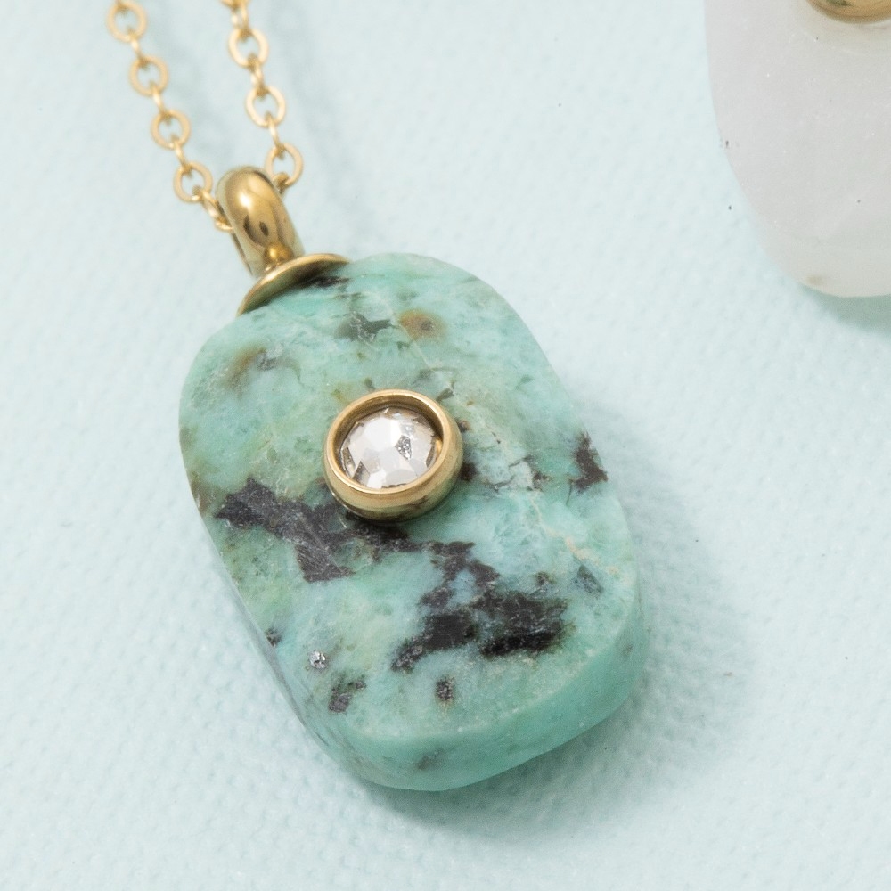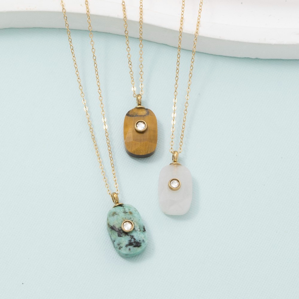 • A classic design with a contemporary twist, this pendant necklace displays a unique semiprecious oval stone crystal accent design. This pendant necklace is a great way to add some glamour and sophistication to your outfit. Available in BR, GN, IV. This item is sold in packs of 1.