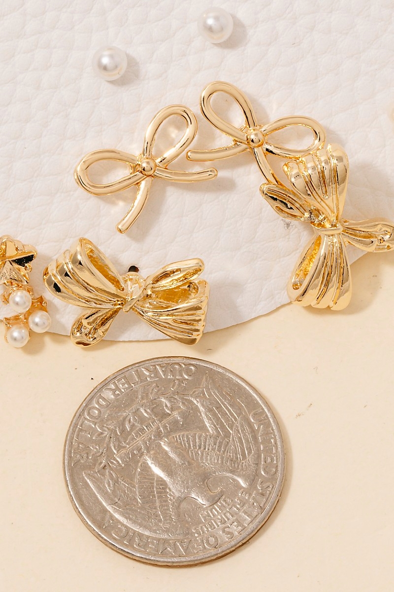 This pair of earrings displays a fashionable five pair bow pearl set style. Embark on a journey of sartorial refinement as this pair of earrings effortlessly complements your fashion sense.