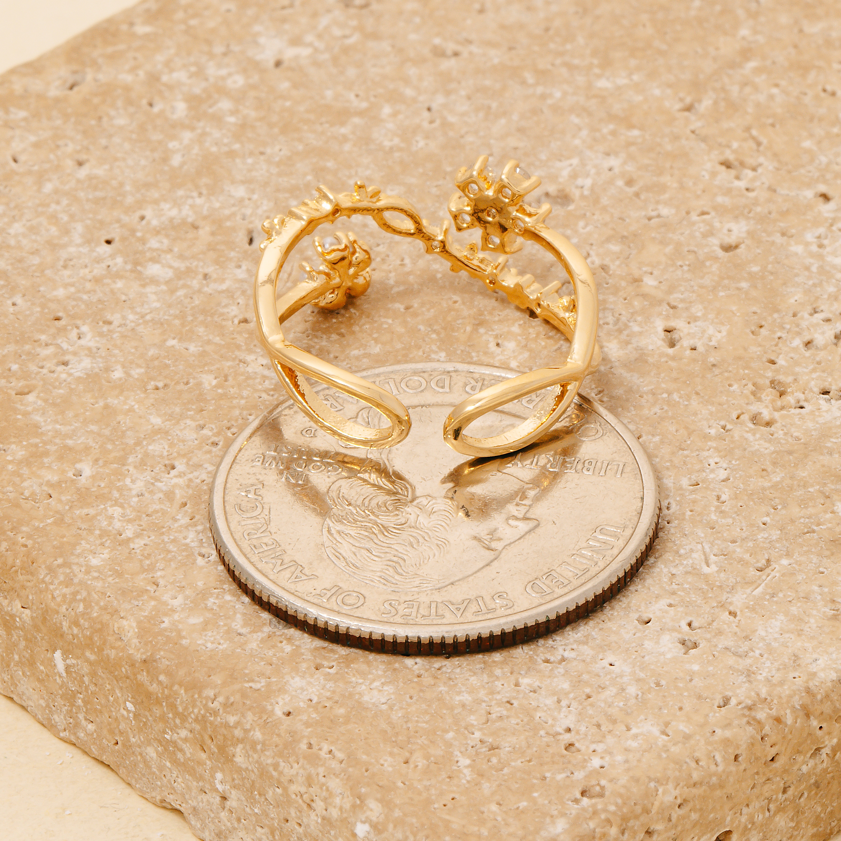 Bold and daring, this ring offers a remarkable layered double cubic zirconia flower open band design. Unleash the power of style with this versatile ring, perfect for enhancing the charm of your wardrobe. Available in G, S. This item is sold in packs of 1.