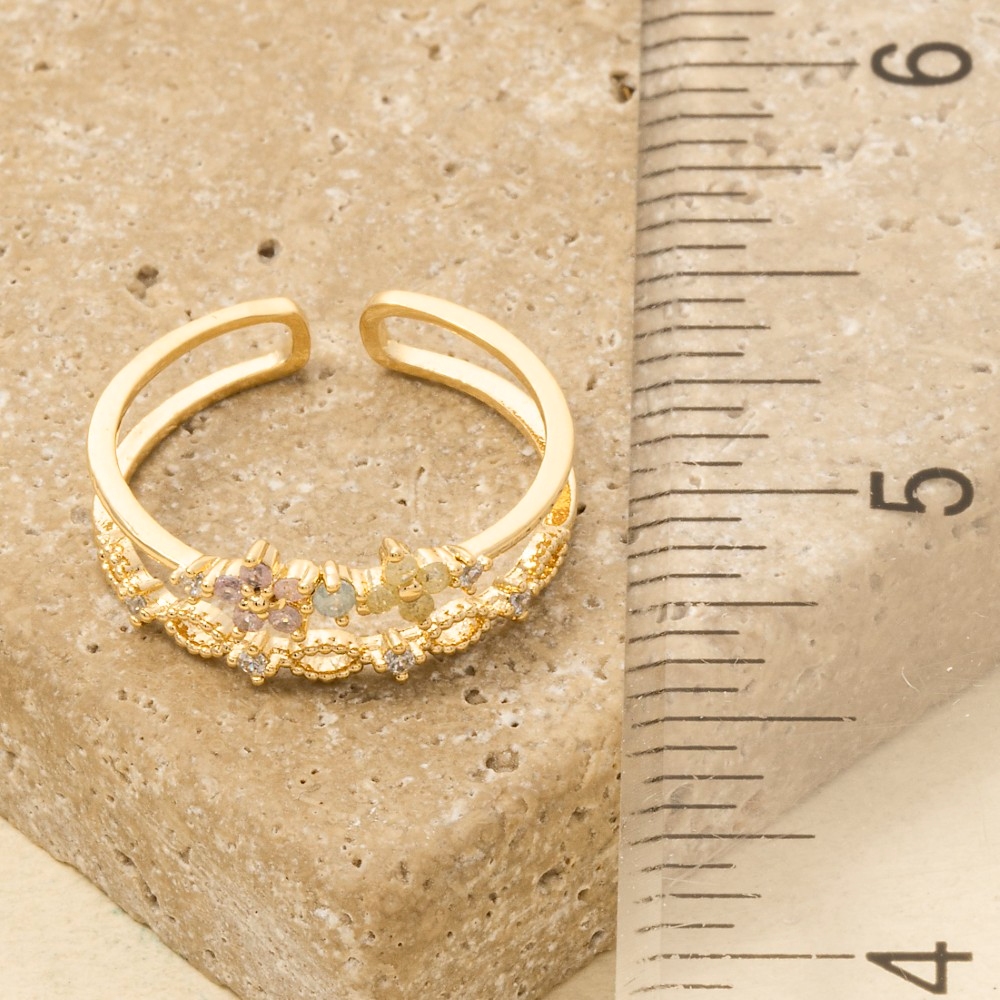 - Make a bold statement, this ring offers a remarkable two row cubic zirconia flower gold dipped design. Embrace fashion flexibility with this versatile ring, designed to effortlessly enhance the sophistication of any outfit. Available in G, S. This item is sold in packs of 1.