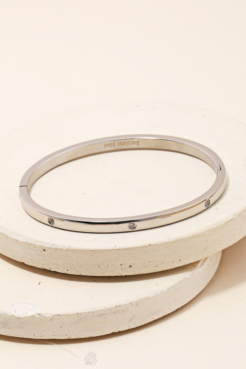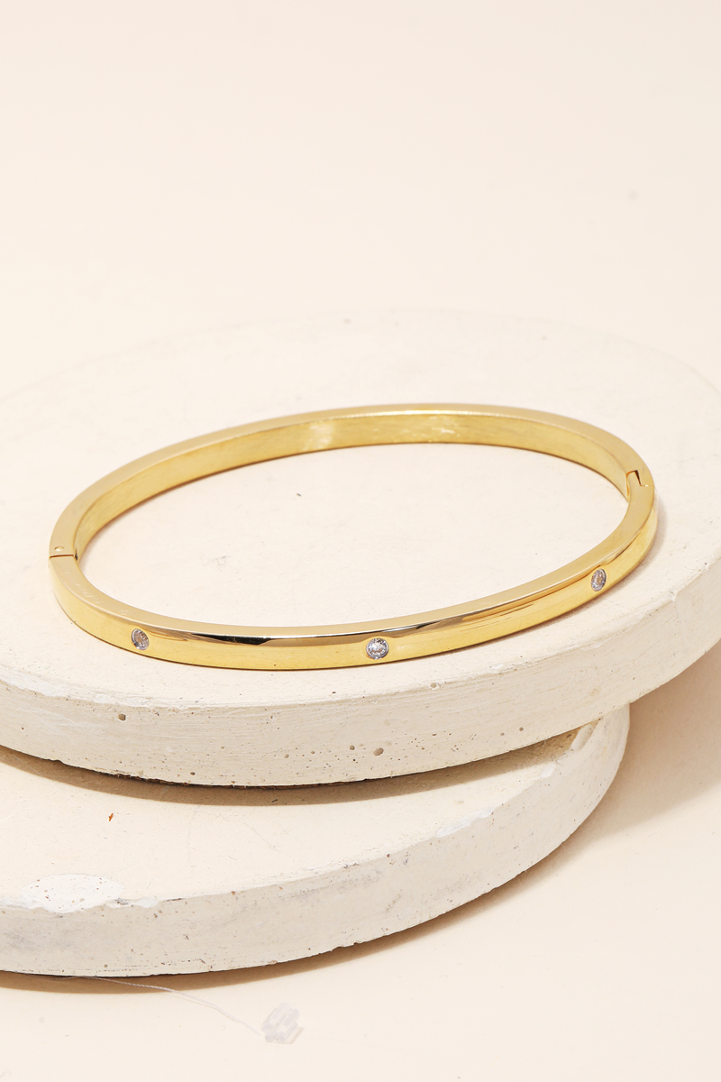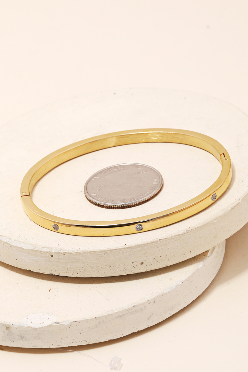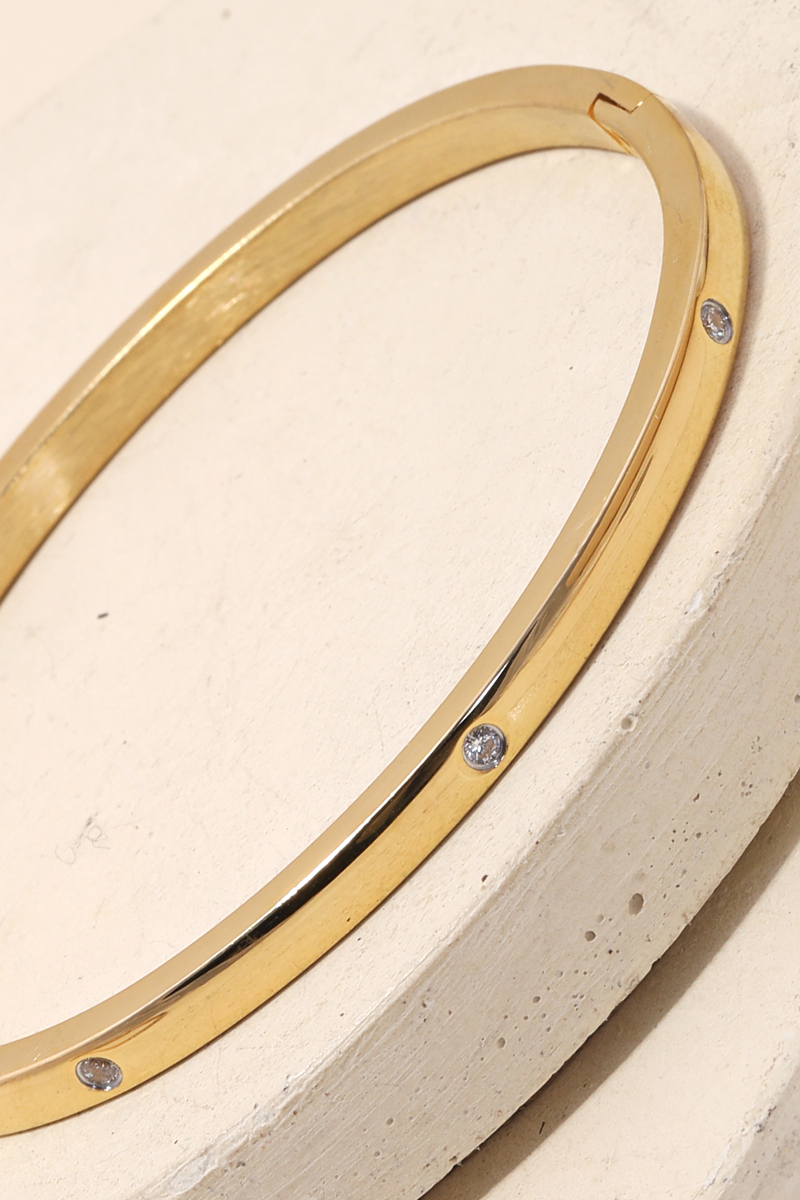 Stainless Steel Cz Studded Gold Plated Bangle Bracelet