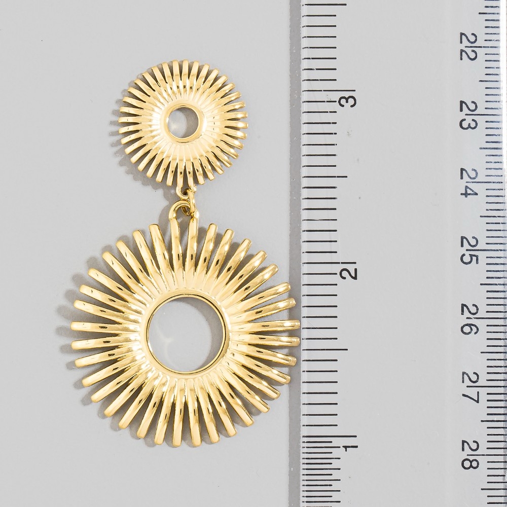 • Elevate your style with something unique and daring, this pair of earrings embodies a sophisticated stainless steel sunburst double drop statement design. Elevate your outfit with this stylish pair of earrings that's perfect for any occasion. Available in SGD. This item is sold in packs of 12.