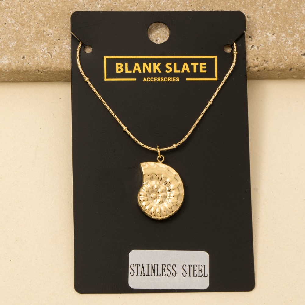 • Sleek, modern, and always stylish, this necklace features an exceptional stainless steel spiral shell pendant design. This necklace is the perfect finishing touch to any outfit, adding a touch of sophistication and glamour. Available in G. This item is sold in packs of 1.