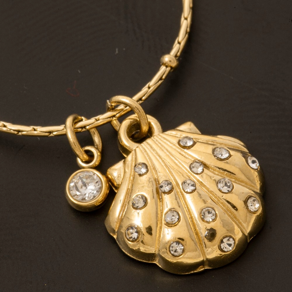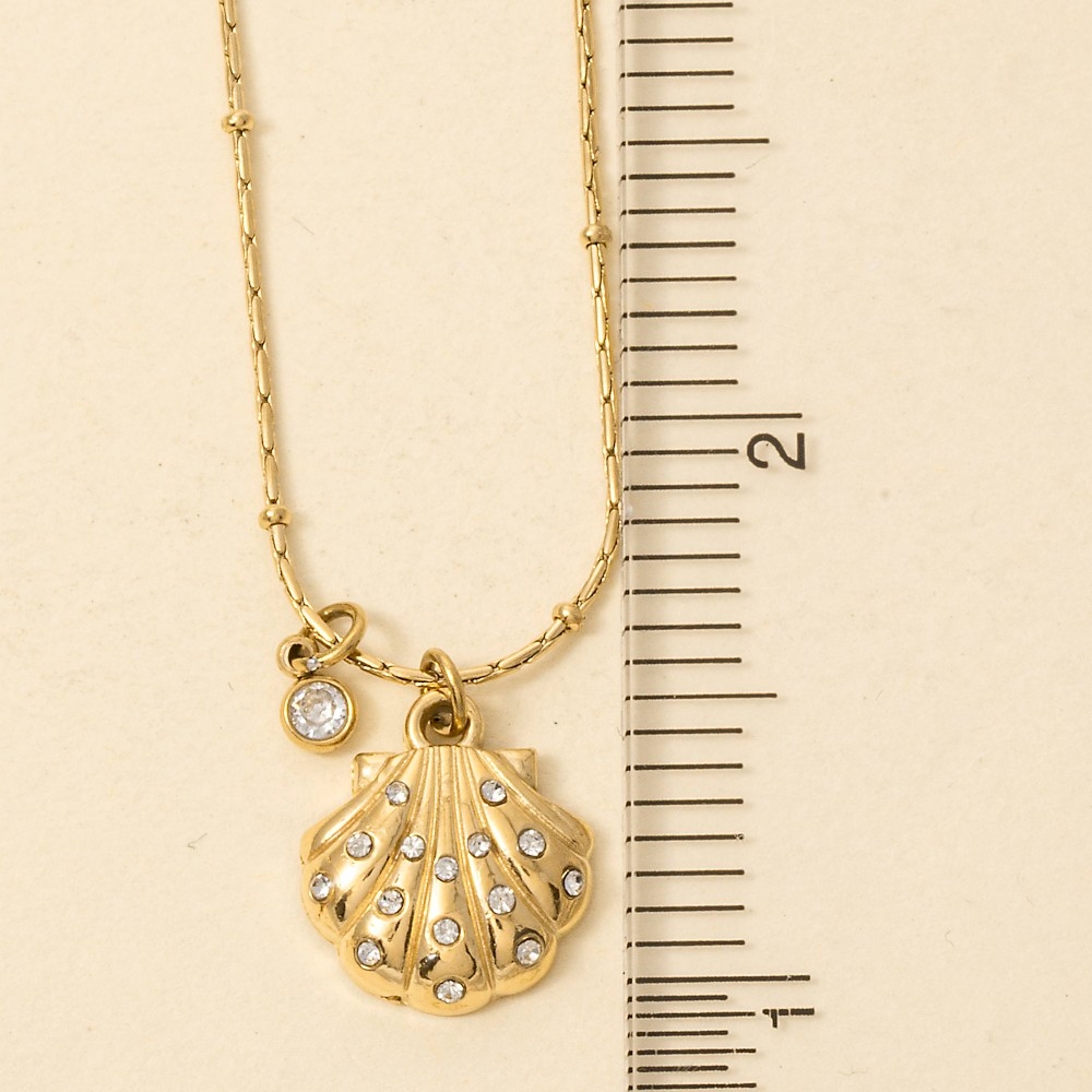 - Effortlessly stylish and always on-trend, this necklace incorporates a remarkable stainless steel studded sea shell pendant design. Master the art of accessorizing with this versatile necklace, a key element for achieving a chic and polished look. Available in G. This item is sold in packs of 1.