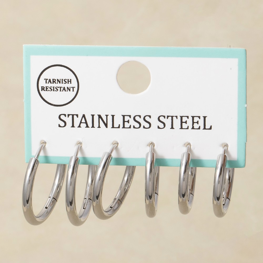 A timeless piece that will never go out of style, this pair of hoop earrings radiates a sleek stainless steel set design. A chic and sophisticated pair of hoop earrings that's perfect for dressing up or down. Available in GD, RD. This item is sold in packs of 1.