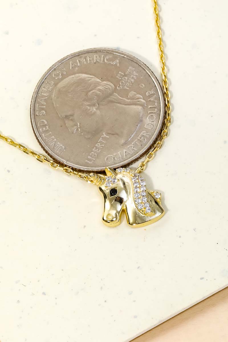 • An elegant, classy, chic and absolutely extravagant stunning must have pendant charm necklace that measures 16+2" in length. This gorgeous necklace features a beautiful unicorn head shaped pendant that is made with 925 rated level of sterling silver and studded with polished jewels. An excellent choice for casual to formal occasions, goes perfectly with business formal work office suits blazer and dresses office attire.