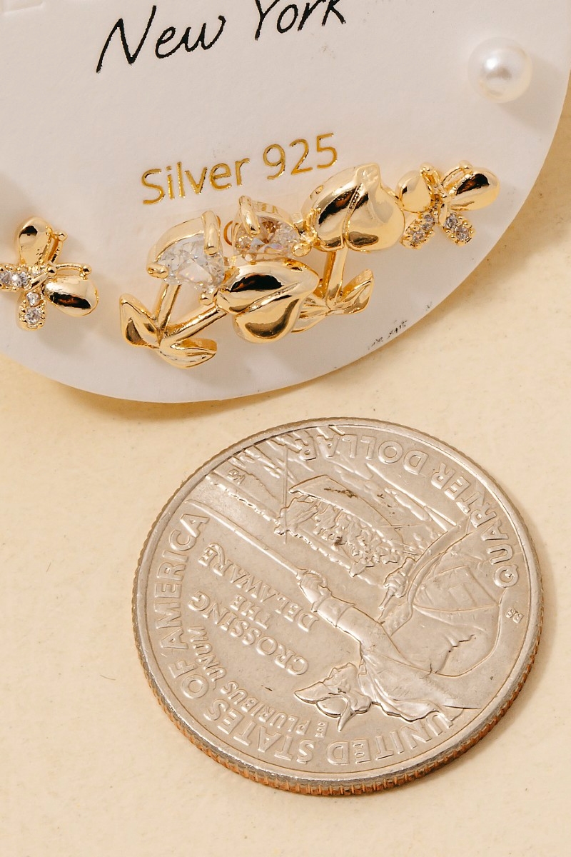 Sterling Silver Cz Pave Mixed Stud Earrings Set