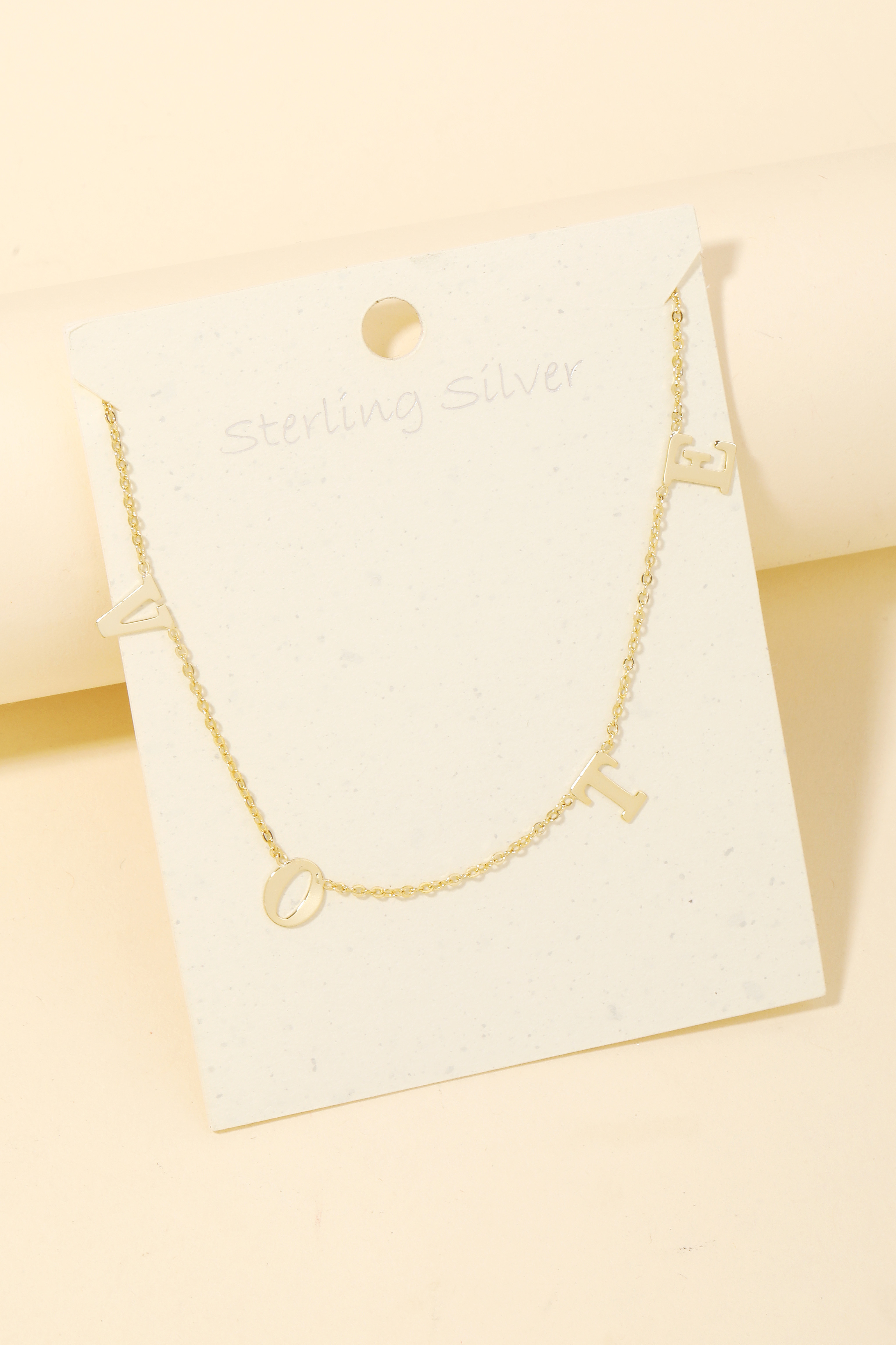 • A contemporary masterpiece, this necklace includes a stunning sterling silver handwritten vote charm design. Perfect for adding a pop of color or texture to any outfit, this accessory is a must-have. This item is sold in packs of 1.