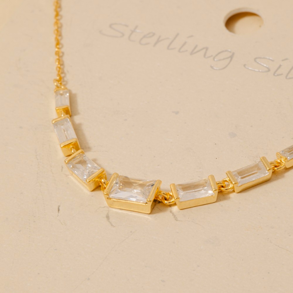 • Sleek and modern, this chain necklace emanates an elegant sterling silver cubic zirconia baguettes design. Perfect for adding a touch of glamour and sophistication to any outfit, this chain necklace is a must-have. Available in GZ. This item is sold in packs of 1.