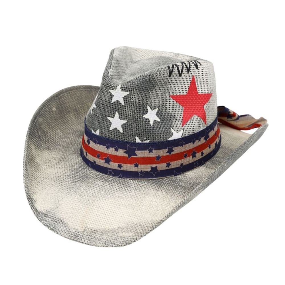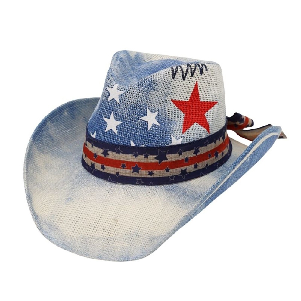 • This piece is both timeless and contemporary, this cowboy hat showcases an alluring american stars and stripes straw design. This item is perfect for adding some color and vibrancy to any outfit. Available in BK, BL. This item is sold in packs of 1.