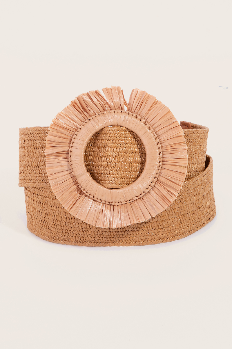 • Guaranteed to add a touch of glamour to any outfit, this belt features a distinct circle buckle fringe straw design. This item is the perfect way to add some texture and interest to any outfit. Available in BK, CG and NAT. This item is sold in packs of 1.