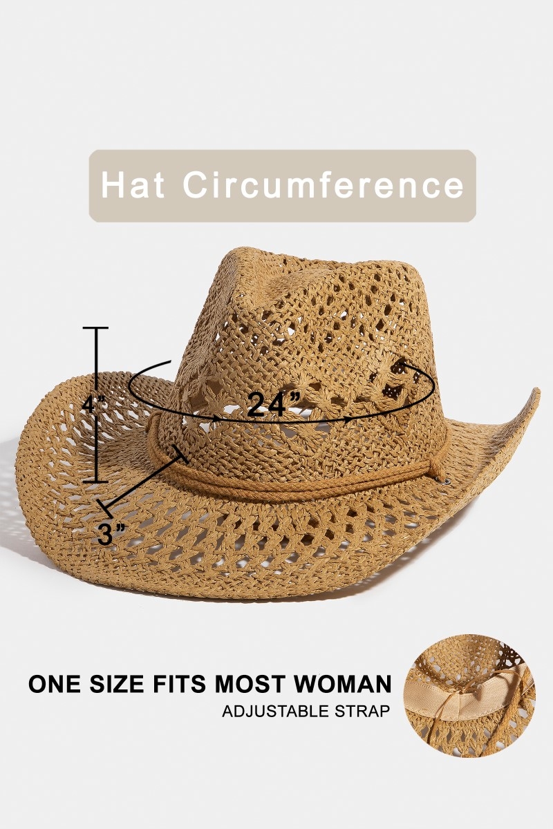 Straw Weave Leather Strap Cowboy Hat