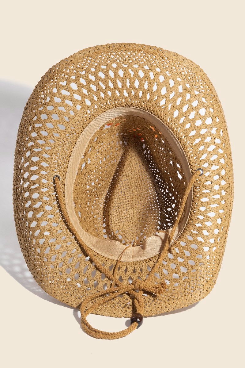 Beaded Strap Straw Cowboy Hat