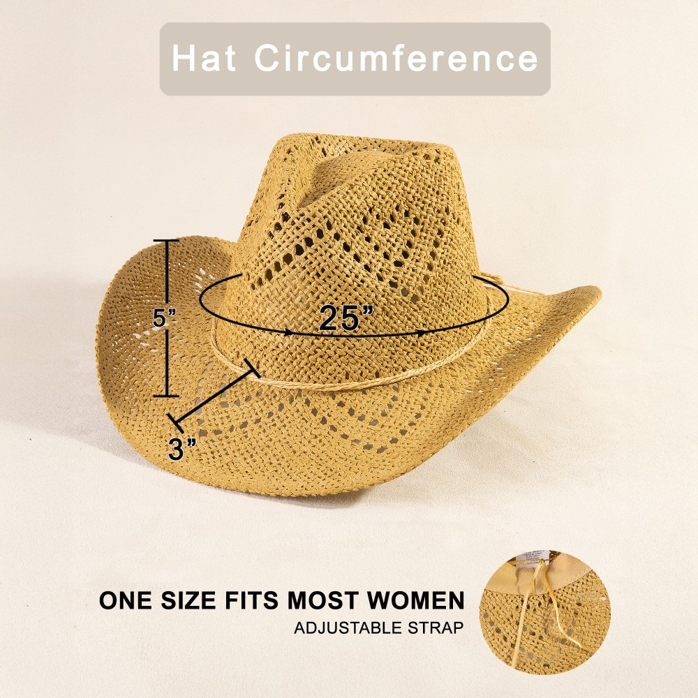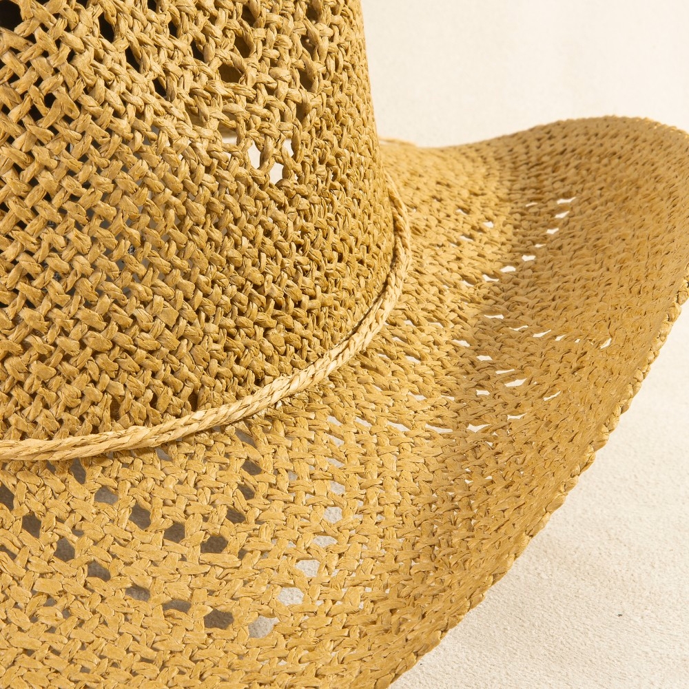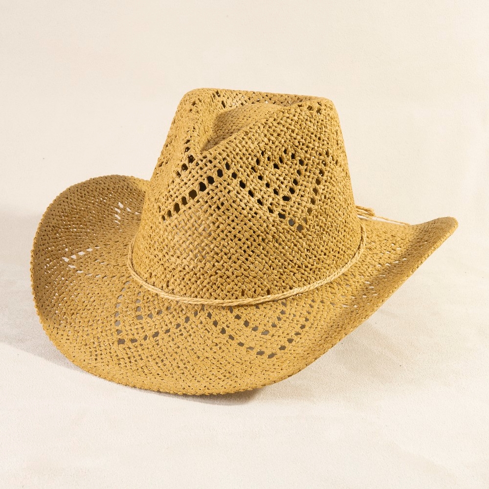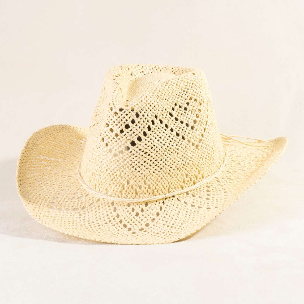 A piece that will never go out of style, this cowboy hat possesses a fine thin rope strap straw design. Infuse a hint of luxury into your daily attire with this versatile cowboy hat, a must-have for those who appreciate timeless elegance. Available in IV, KA. This item is sold in packs of 1.