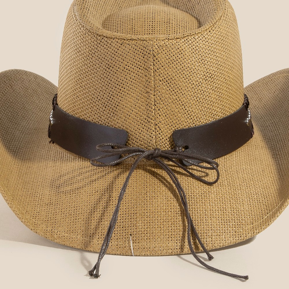 Western Leather Strap Straw Cowboy Hat