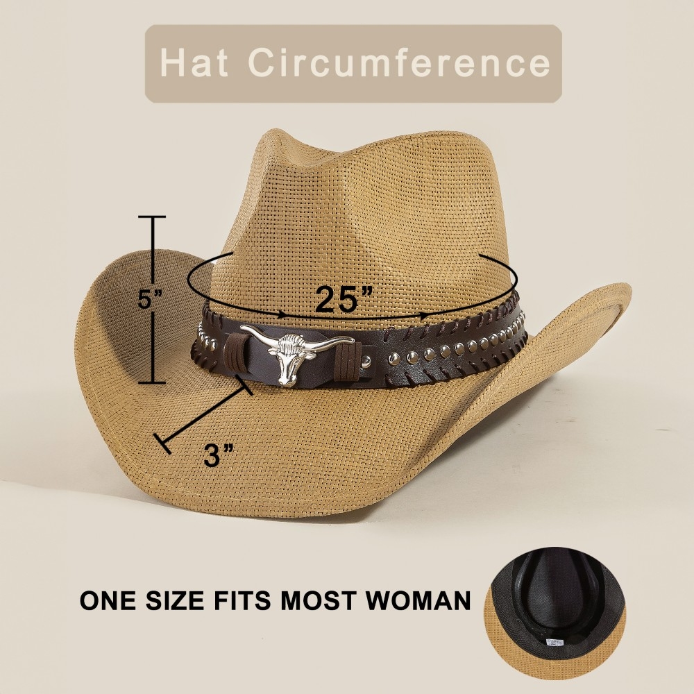 • Effortlessly chic and always on-trend, this cowboy hat showcases a breathtaking western long horn belt strap straw design. This cowboy hat is the perfect finishing touch to any outfit, adding a touch of sophistication and glamour. Available in BK, IV, KA. This item is sold in packs of 1.