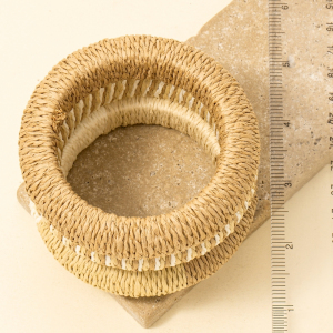 3Pc Mixed Straw Weave Bangle Bracelet Set
