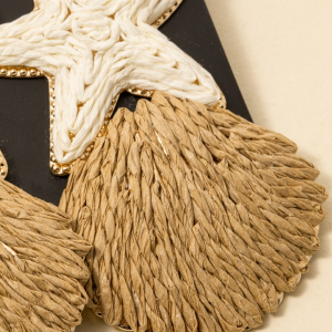 Straw Weave Starfish And Shell Sea Life Dangle Earrings
