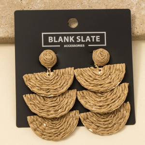 Straw Weave 3 Tone Tiered Petals Dangle Earrings