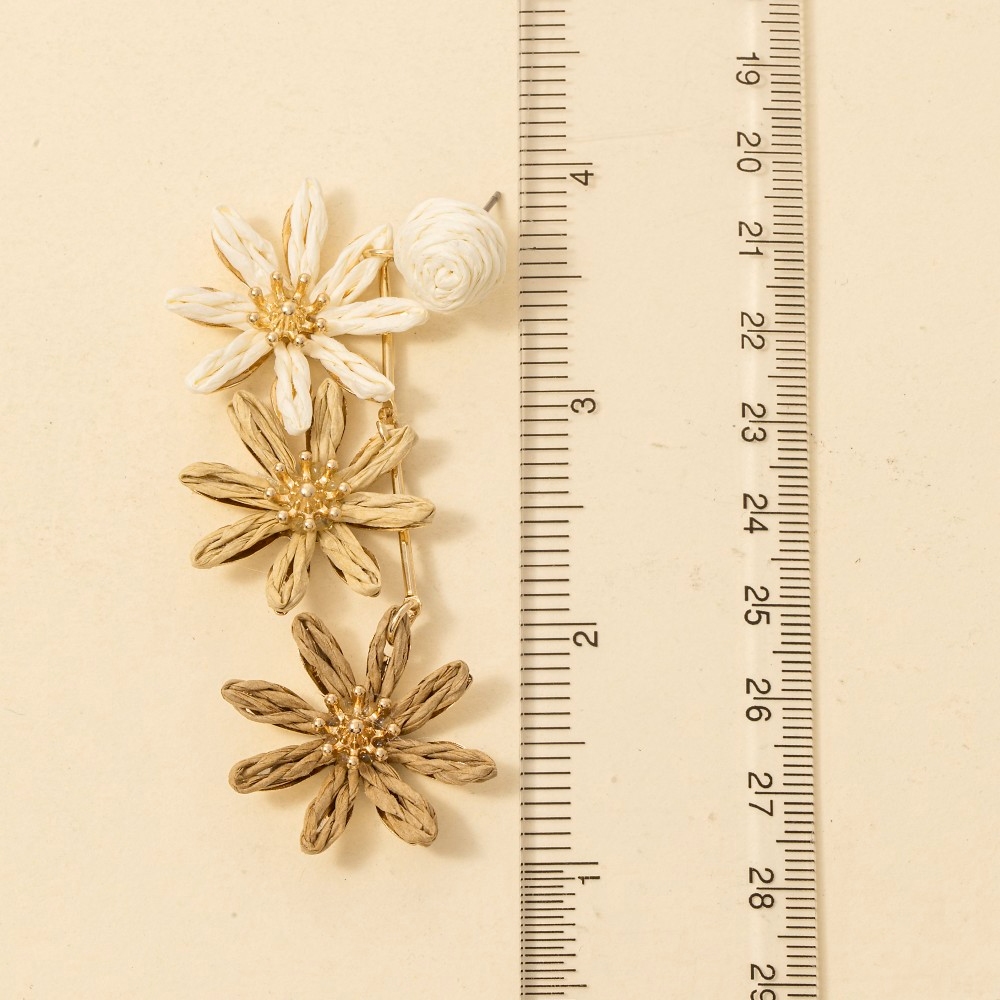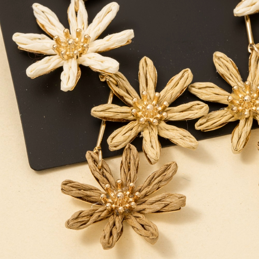 - Perfectly polished and endlessly versatile, this pair of dangle earrings flaunts a luxurious straw weave triple intricate flower design. A stylish pair of dangle earrings that's perfect for complementing any outfit you wear. Available in MU. This item is sold in packs of 1.