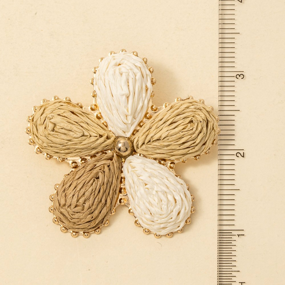 A versatile and stylish addition to any wardrobe, this pair of stud earrings carries a charming multi tone straw weave flower design. Infuse your ensemble with a touch of sophistication using this versatile pair of stud earrings, a game-changer in the world of fashion. Available in MU. This item is sold in packs of 1.