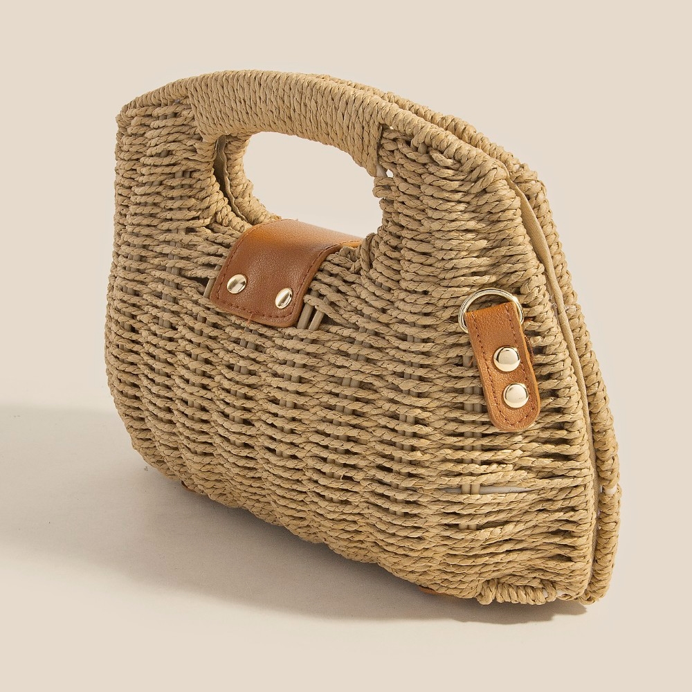 Multi Tone Straw Half Moon Round Handle Tote Bag