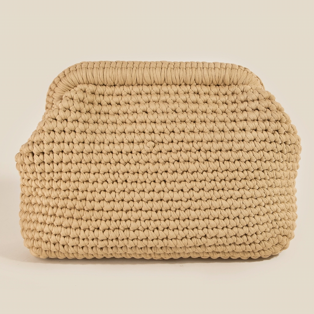 Metallic Straw Woven Half Moon Clutch Bag
