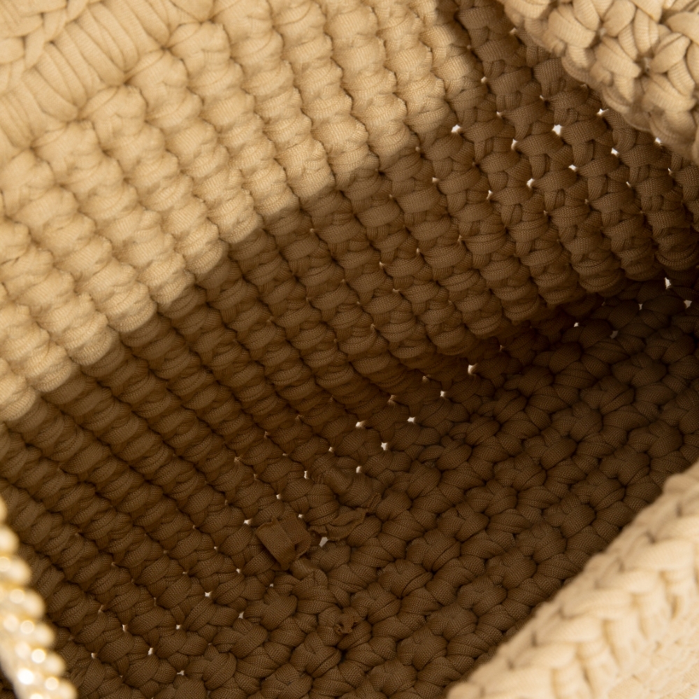 Multi Tone Straw Half Moon Round Handle Tote Bag