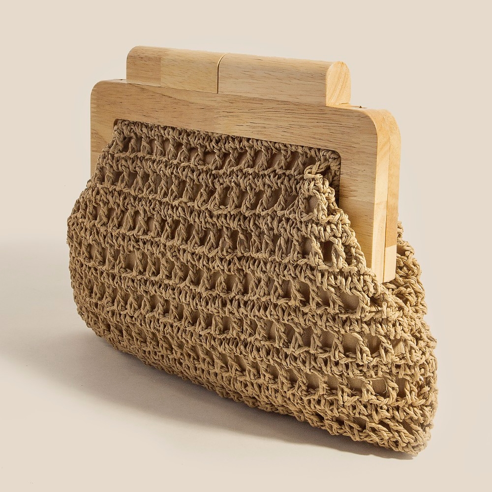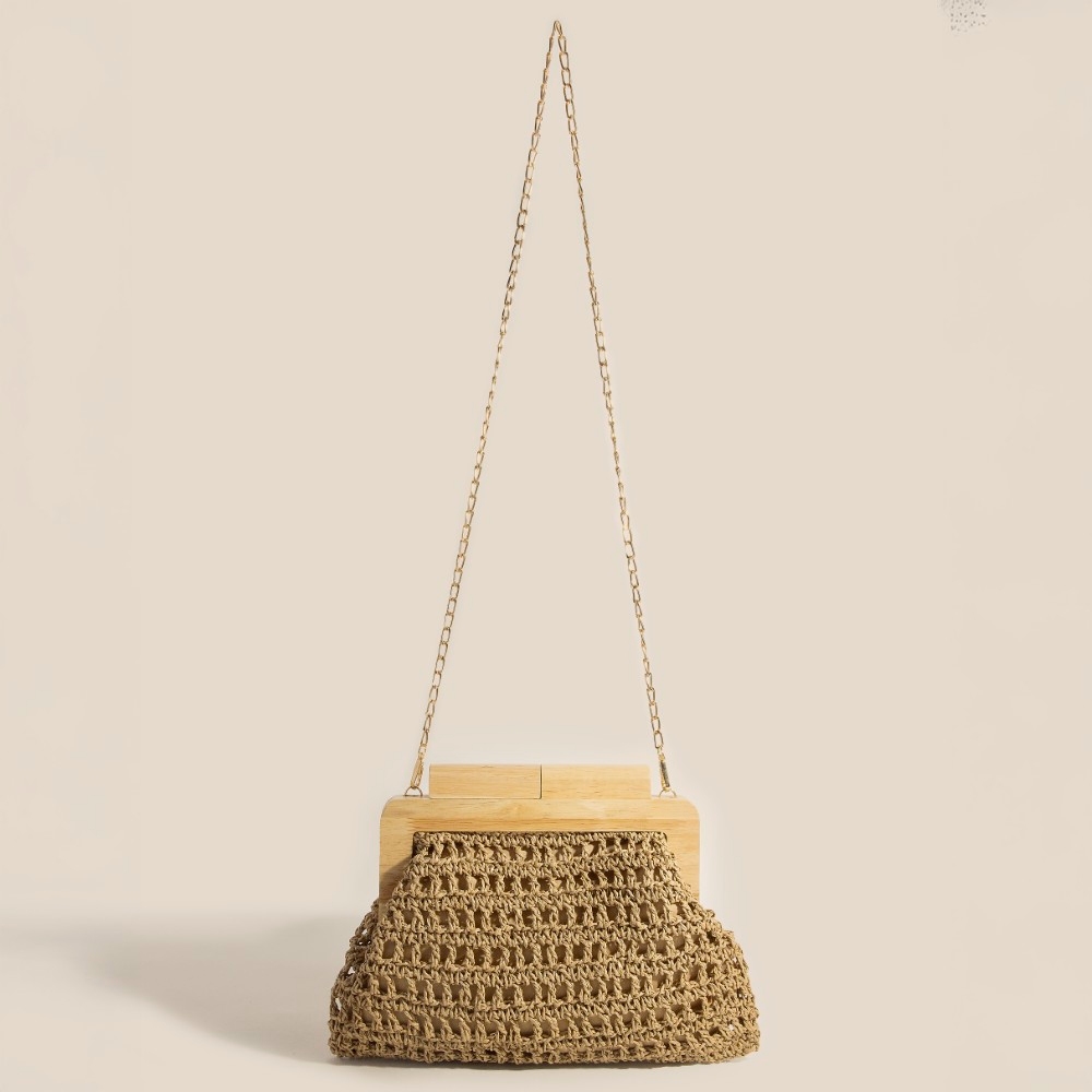 Stay on-trend and ahead of the fashion curve, this clutch bag brings a one-of-a-kind wooden top frame straw braided design. Unlock endless styling possibilities with this versatile clutch bag, creating a signature look that speaks volumes. Available in IV, KA. This item is sold in packs of 1.
