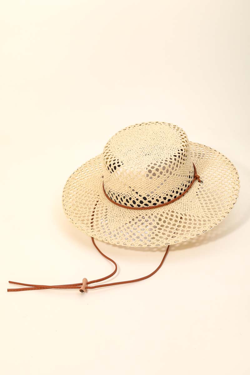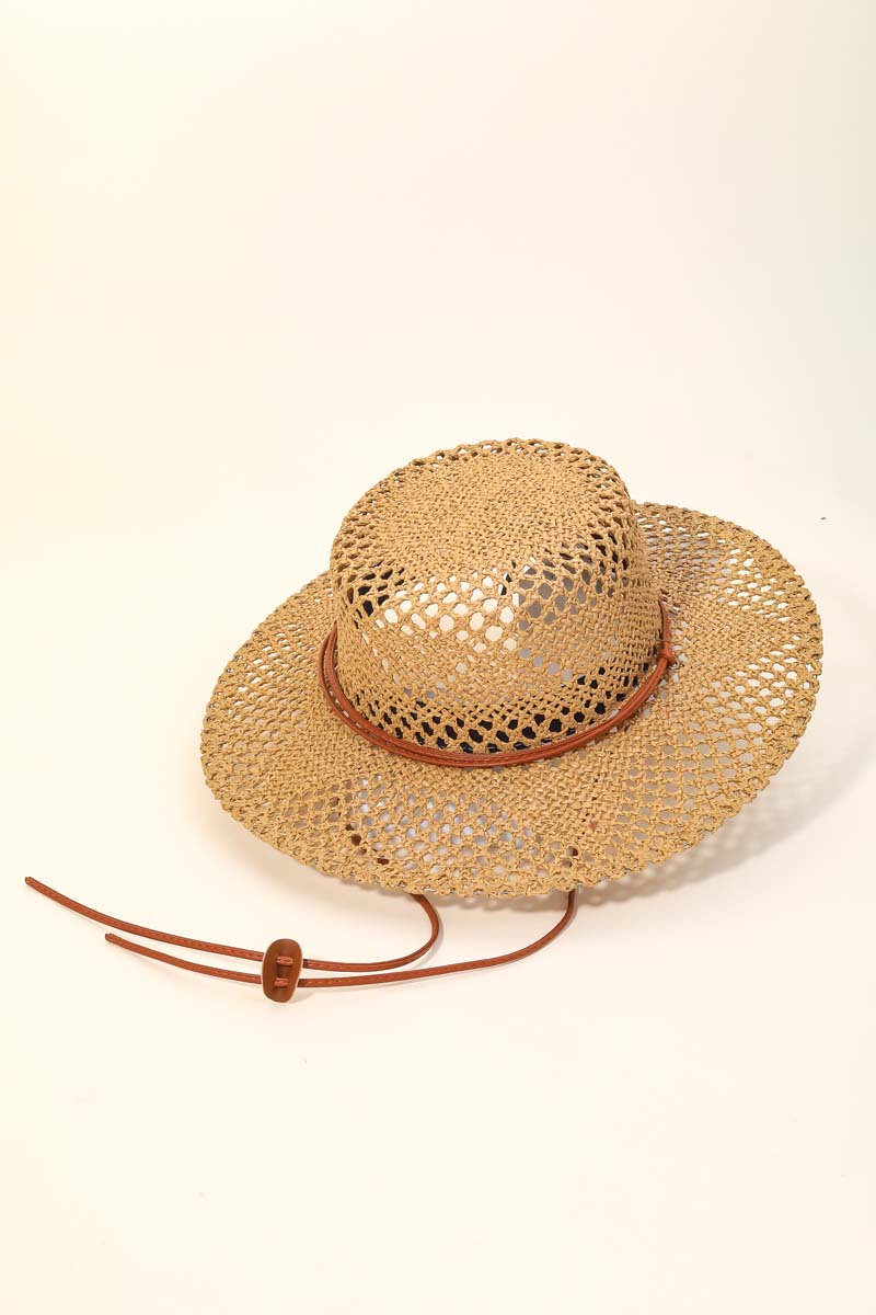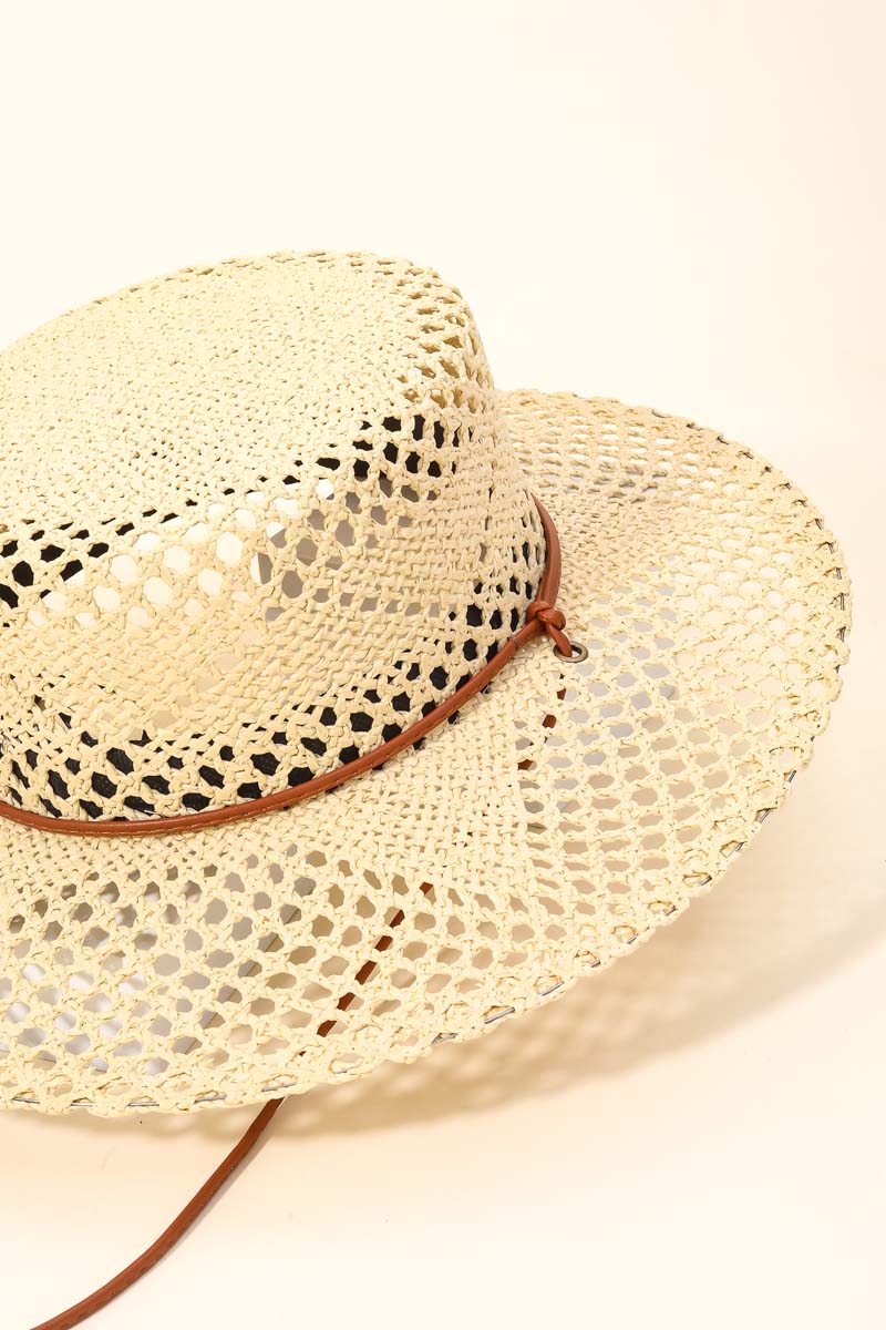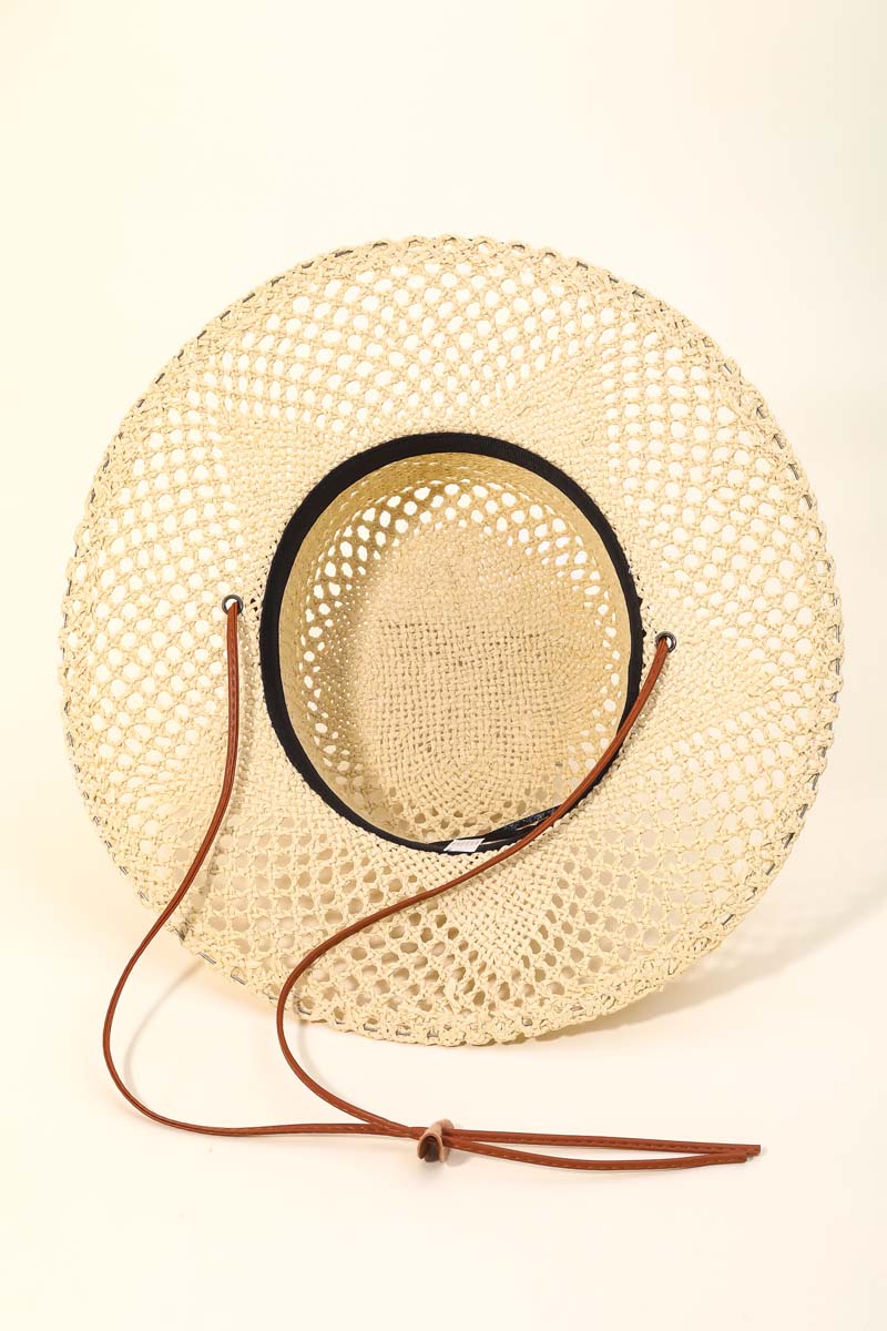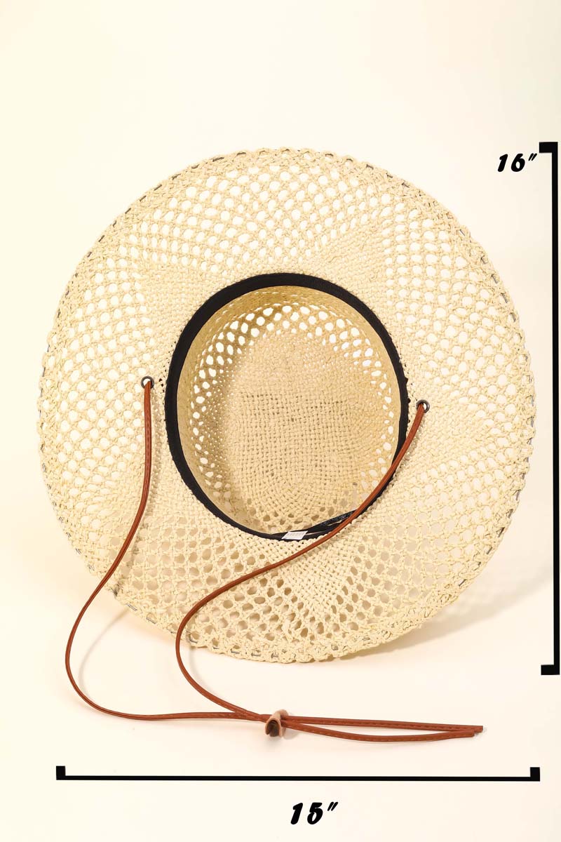 Beaded Strap Straw Cowboy Hat